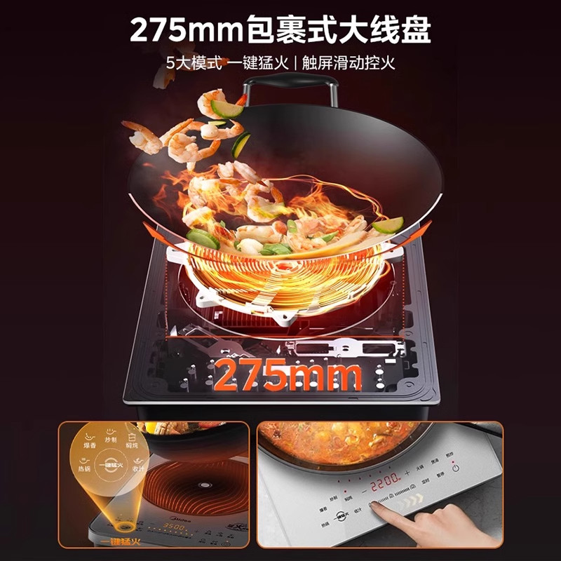 美的凹面2025新款电磁炉家用3500w大功率炒菜锅一体全套正品官方