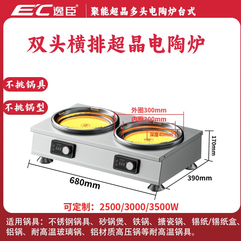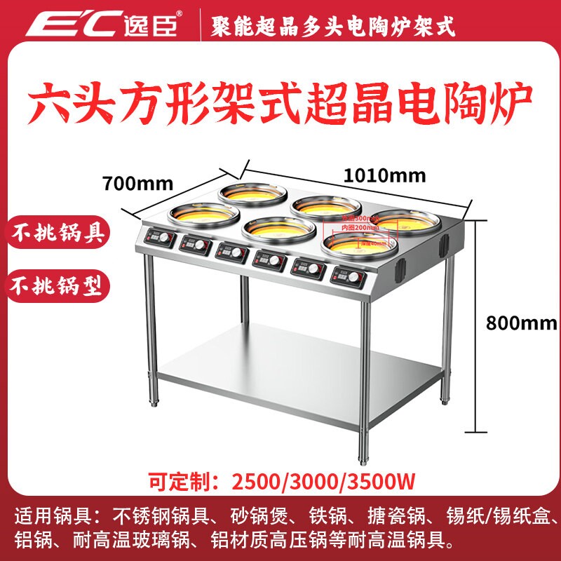 淘宝逸臣商用平凹面多头3500W大功率辣烫电磁灶四六八眼电陶炉麻