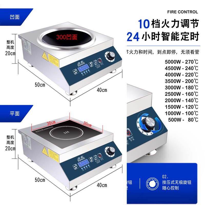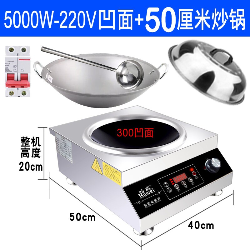 淘宝哈威商用电磁炉5000W平凹面爆炒业猛火灶电炒炉食堂饭店大功率商