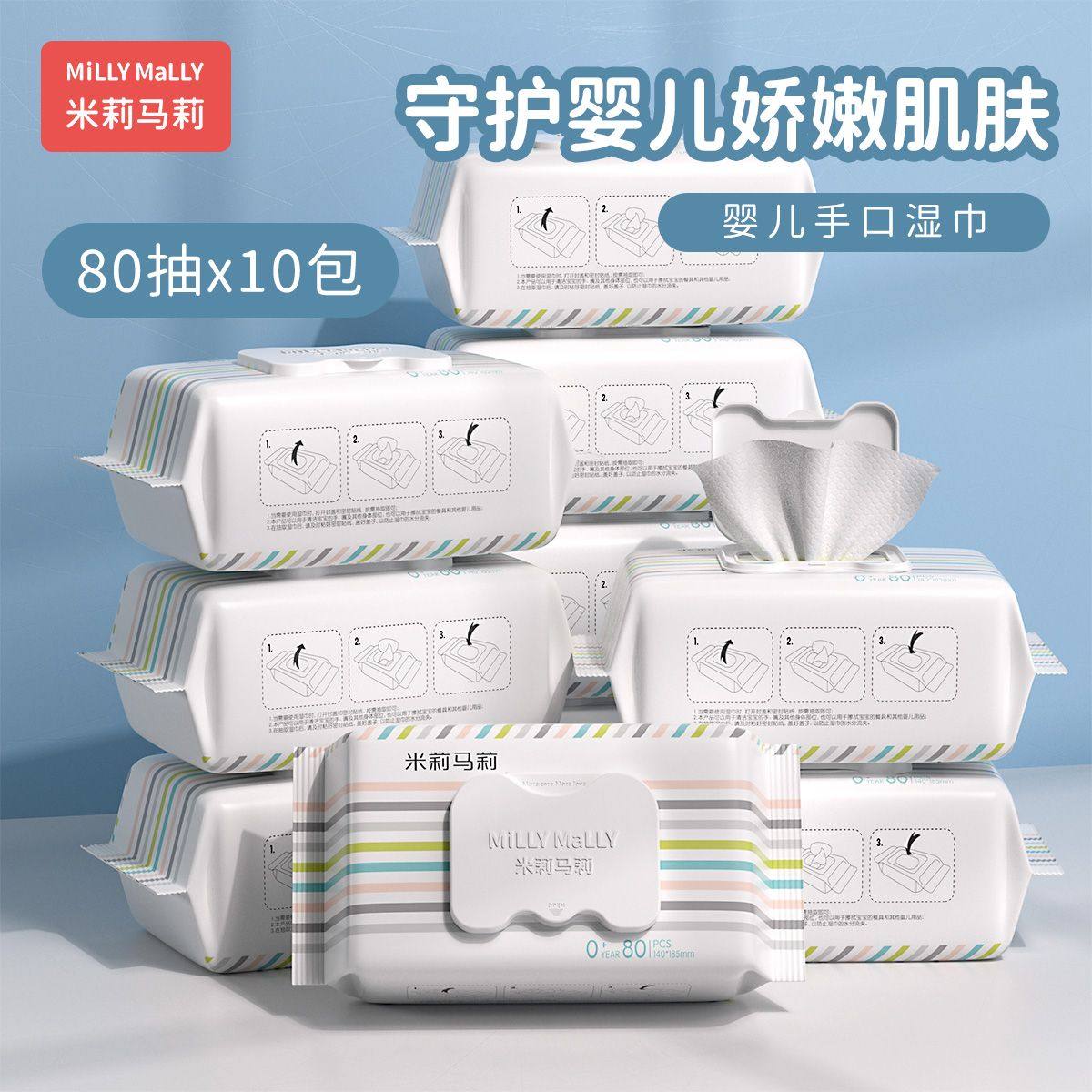 淘宝米莉马莉婴儿湿巾新生幼儿植萃手口专用加厚儿童湿纸巾实惠家庭装