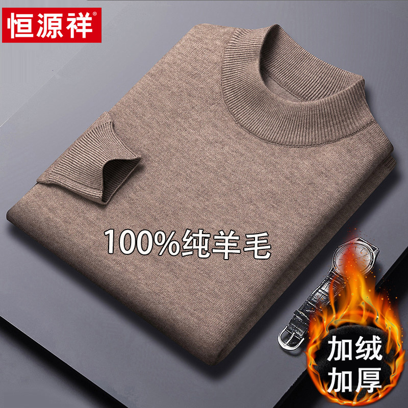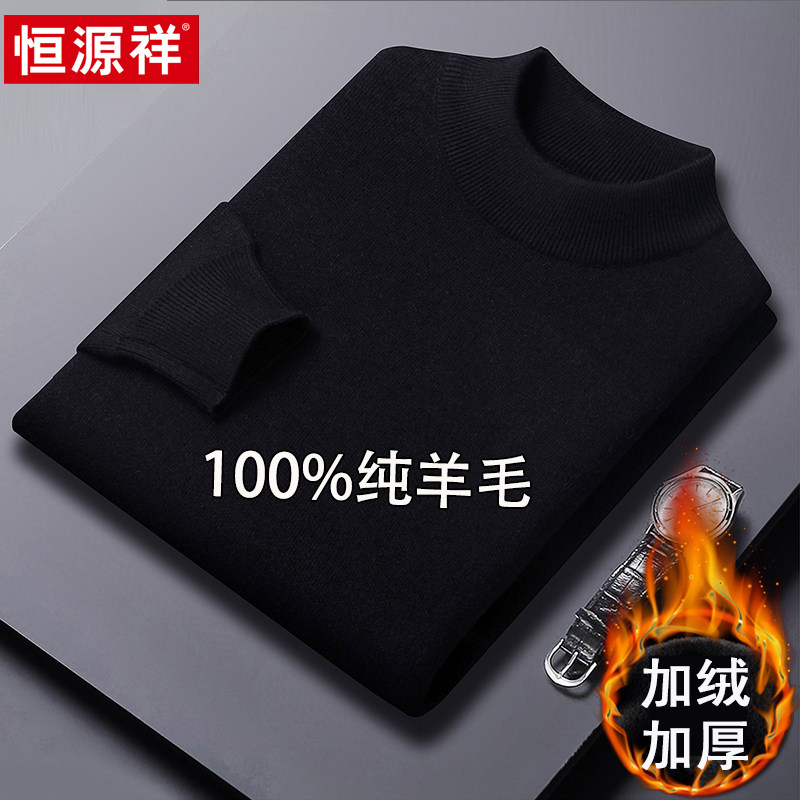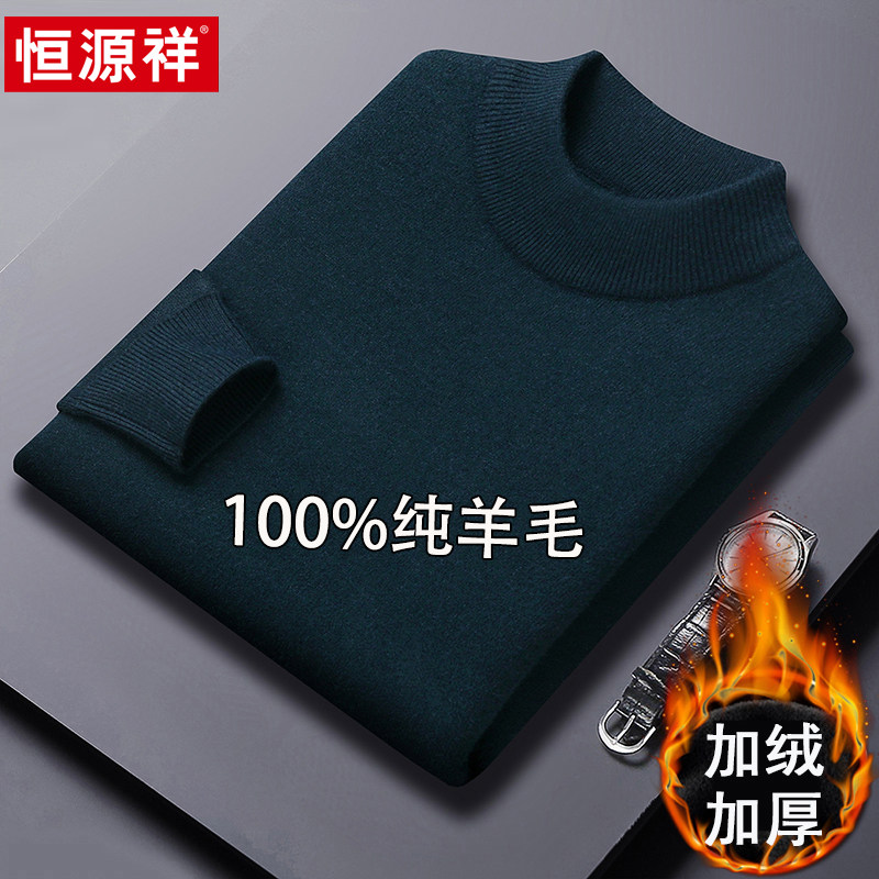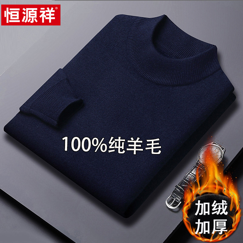 淘宝恒源祥半高领毛衣男加绒加厚100%纯羊毛衫冬季新款针织打底羊绒衫