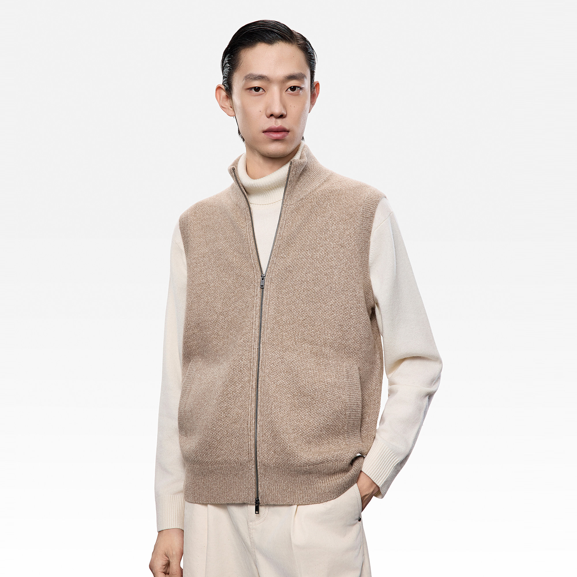 ERDOS男装2025年秋冬全新推出纯羊绒半高领翻花背心,精选优质山羊绒,触感细腻柔软,保暖轻盈。经典半高领设计兼顾优雅与实穿性,搭配精致翻花纹理,彰显低调奢华质感。简约版型剪裁利落,贴合身形却不束缚,轻松驾驭商务与休闲场景。无论是内搭衬衫打造职场造型,或外披大衣营造秋冬层次,皆能展现男士沉稳内敛的时尚品味。作为品牌匠心之作,这款背心融合传统工艺与现代审美,是追求品质与舒适男士的理想之选,为秋冬衣橱增添一抹温暖格调。