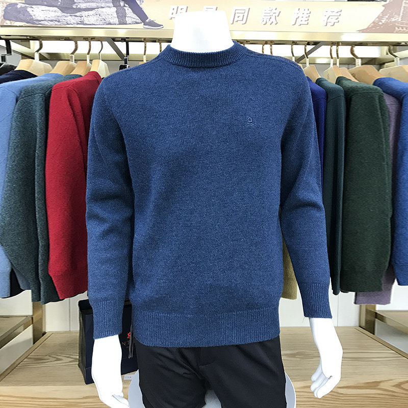 淘恒源祥100%精纺纯羊毛衫男半高领加厚打底针织衫羊绒保暖中年毛衣