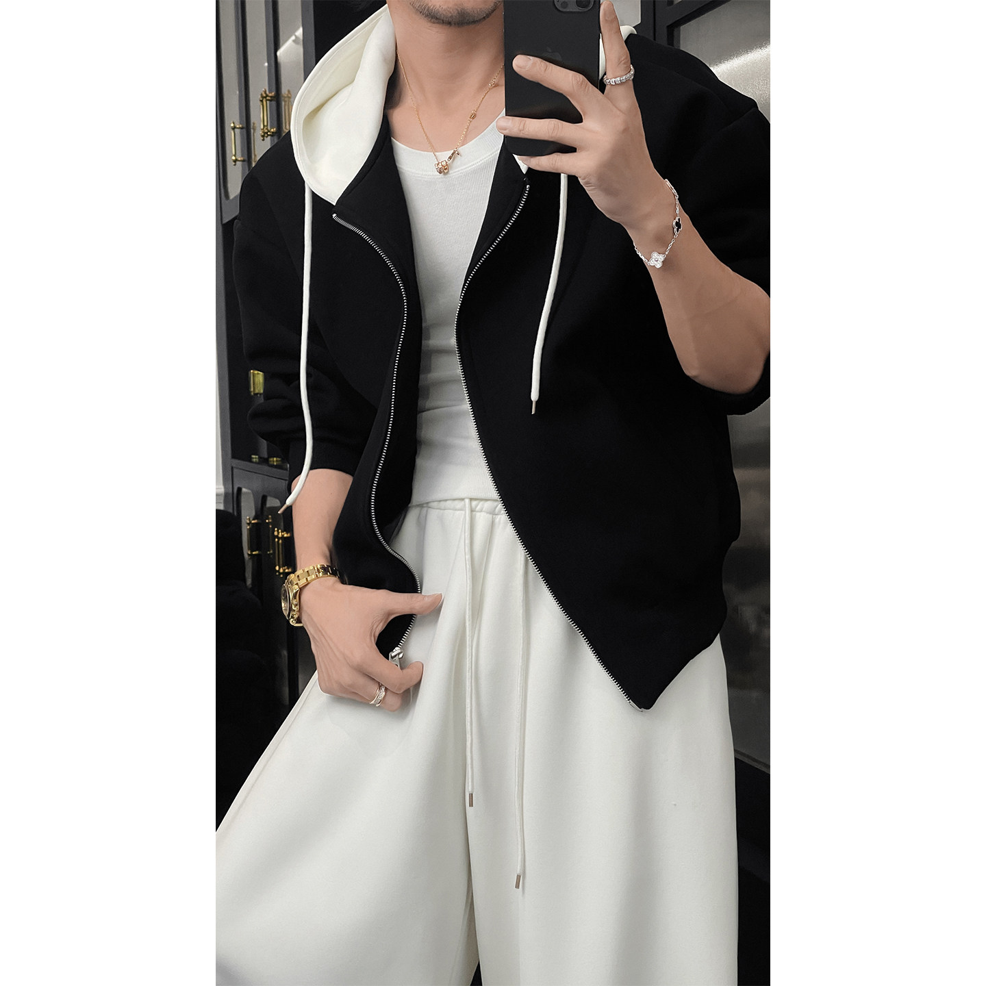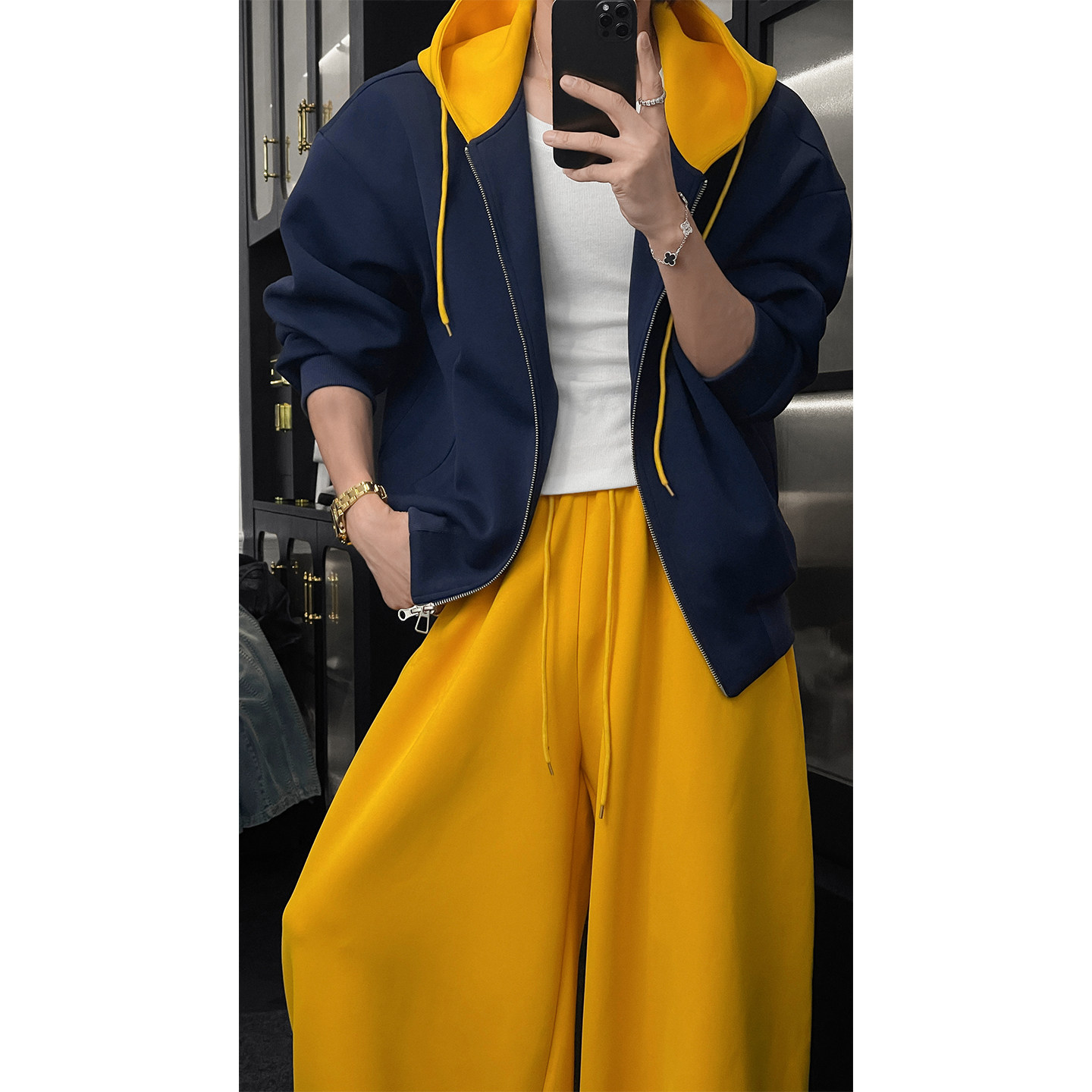 淘宝龙叨叨2026春季新品原创撞色拼接设计美式休闲连帽卫衣卫裤套装男