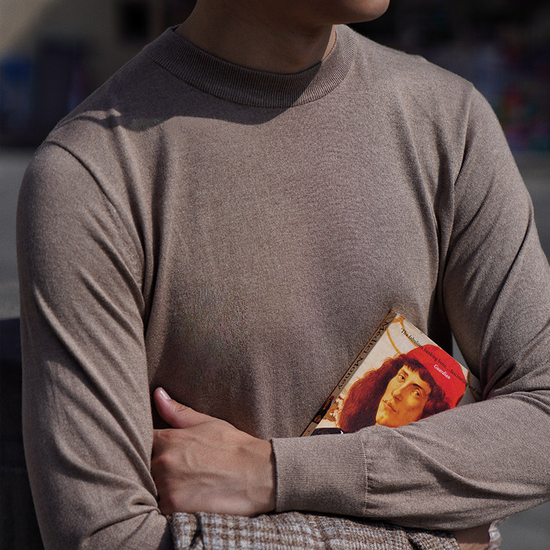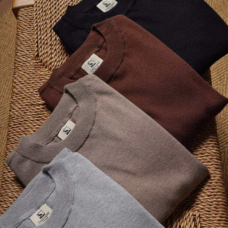 淘宝CM那不勒斯皇后康赛妮真丝羊绒针织圆领长袖男士针织衫