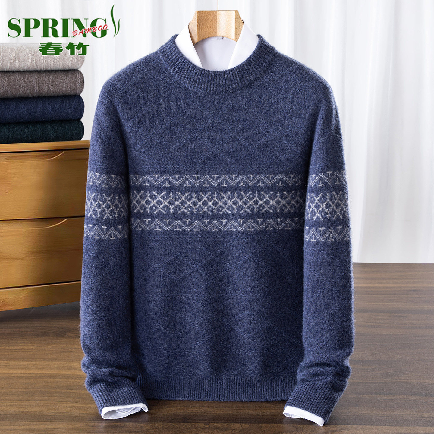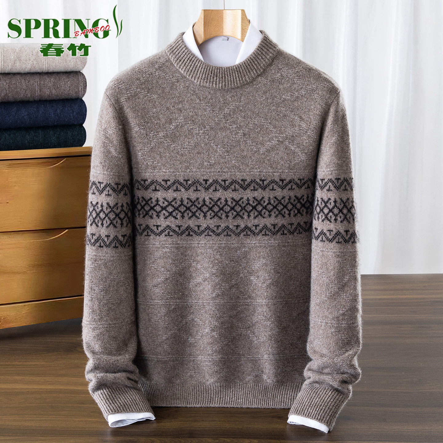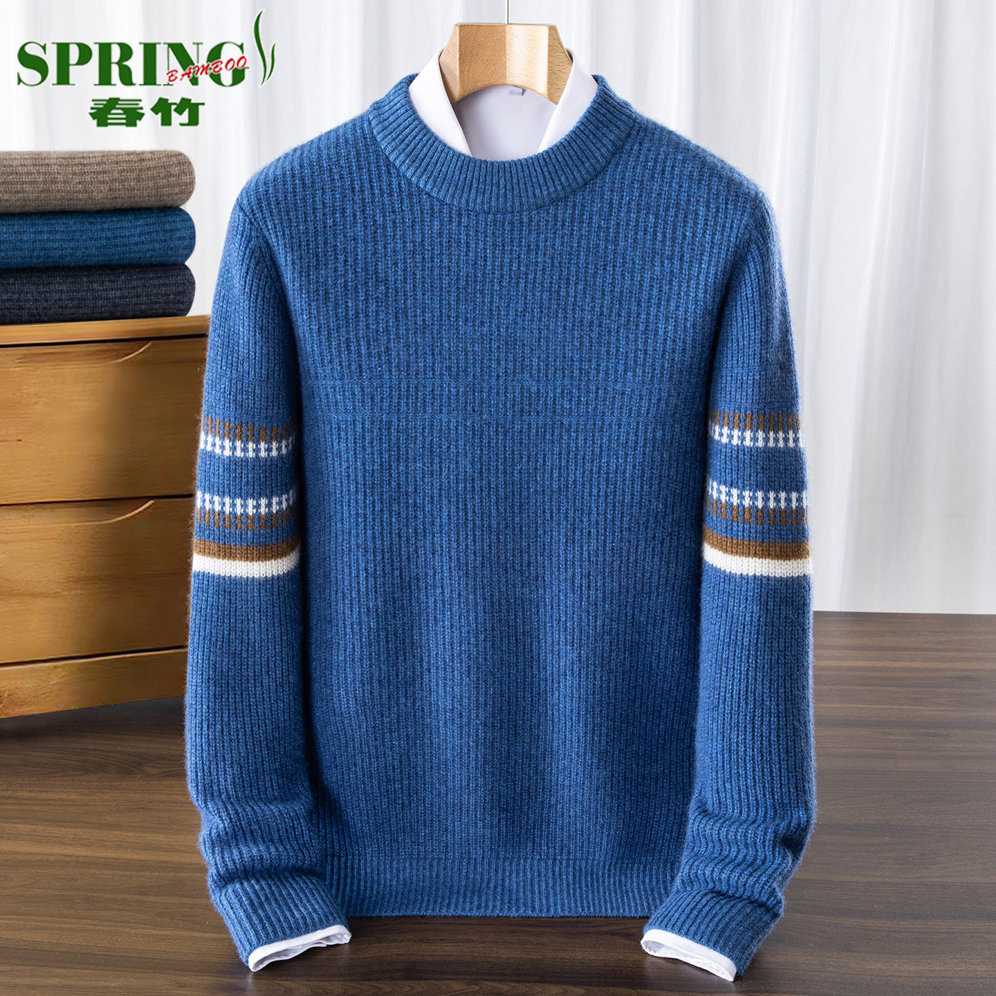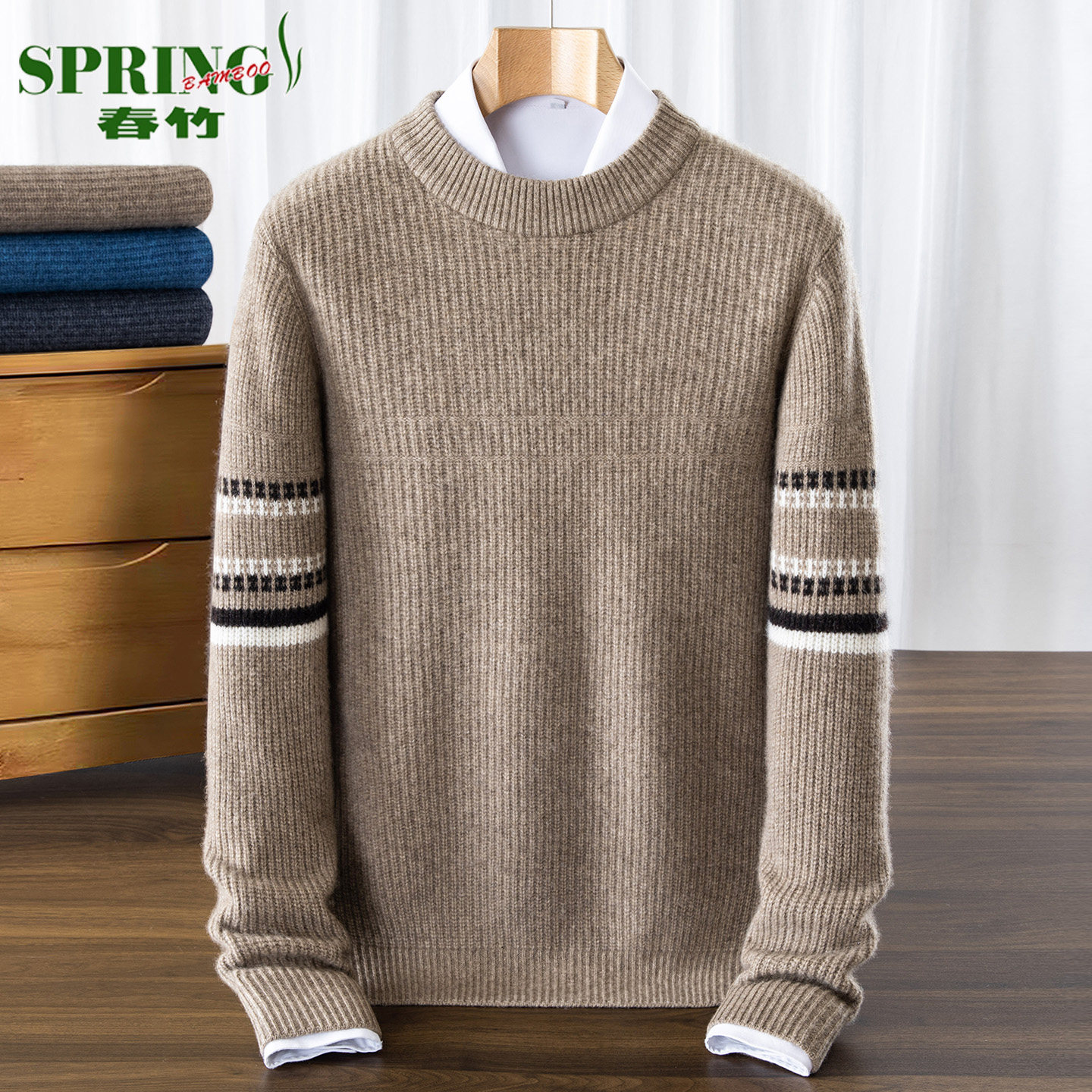 淘宝上海春竹100%山羊绒衫男圆领加厚冬季新款中年宽松休闲高级感毛衣