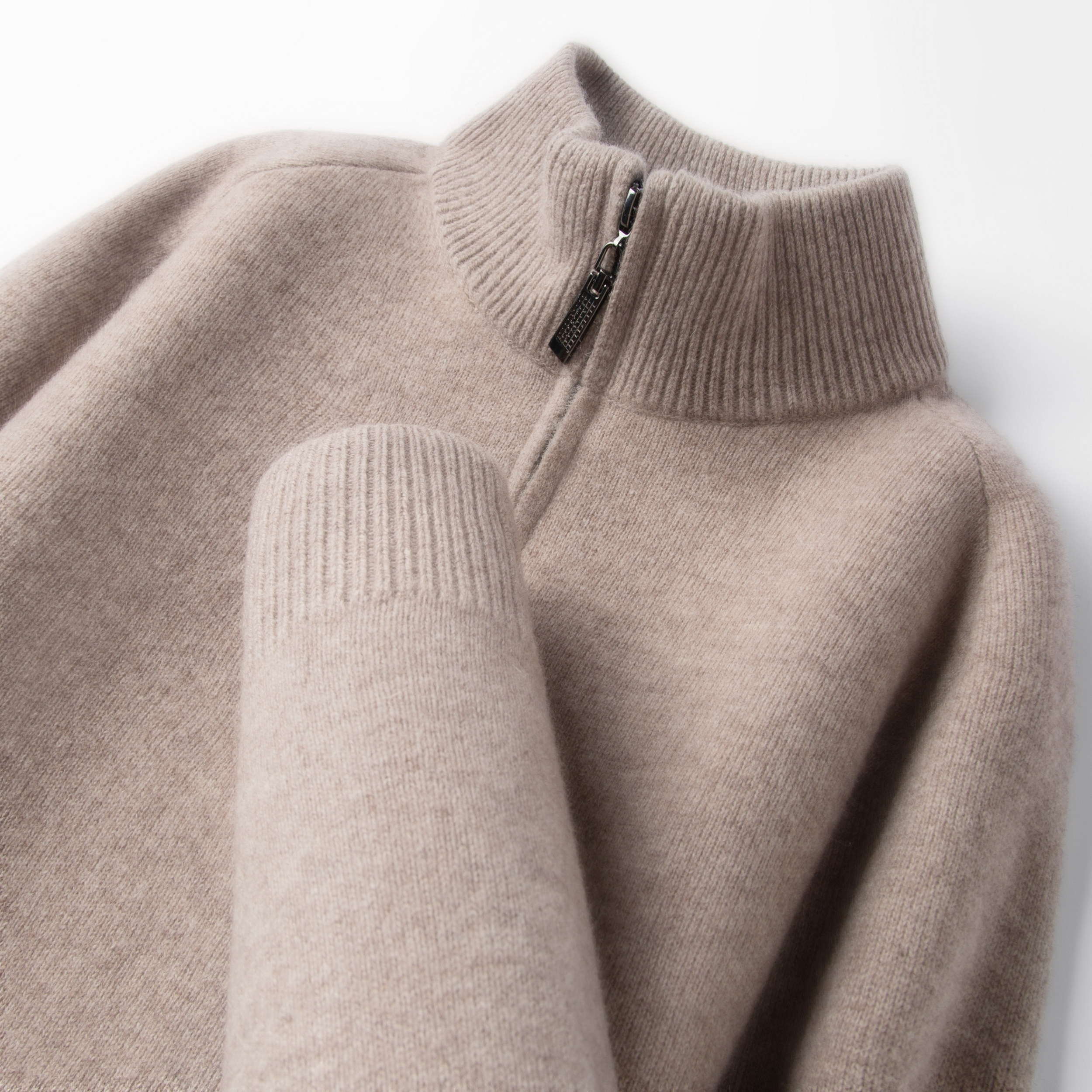 淘宝鄂尔多斯市100纯山羊绒衫男款半高领拉链加绒加厚毛衣商务羊毛衫
