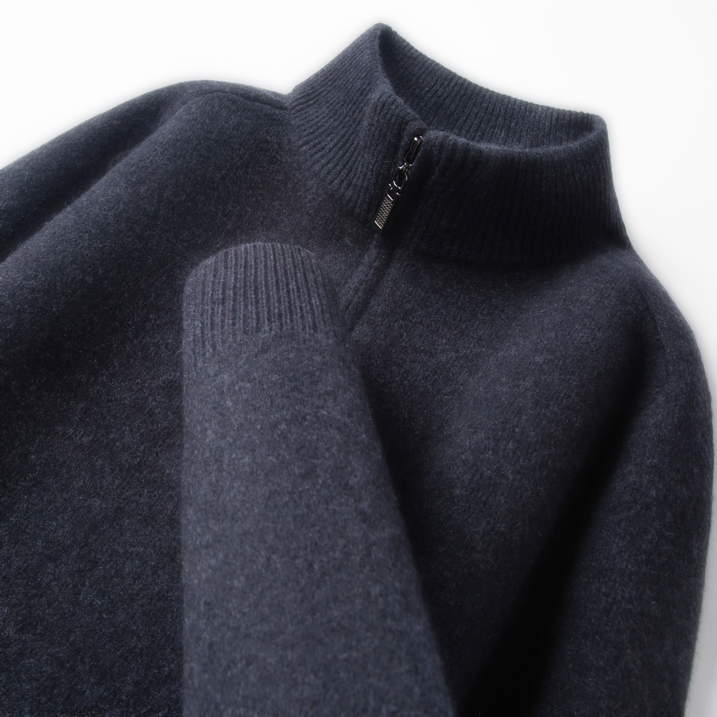 鄂尔多斯市产冬季纯羊毛衫男加厚半高拉链领毛衣男针织休闲羊绒衫