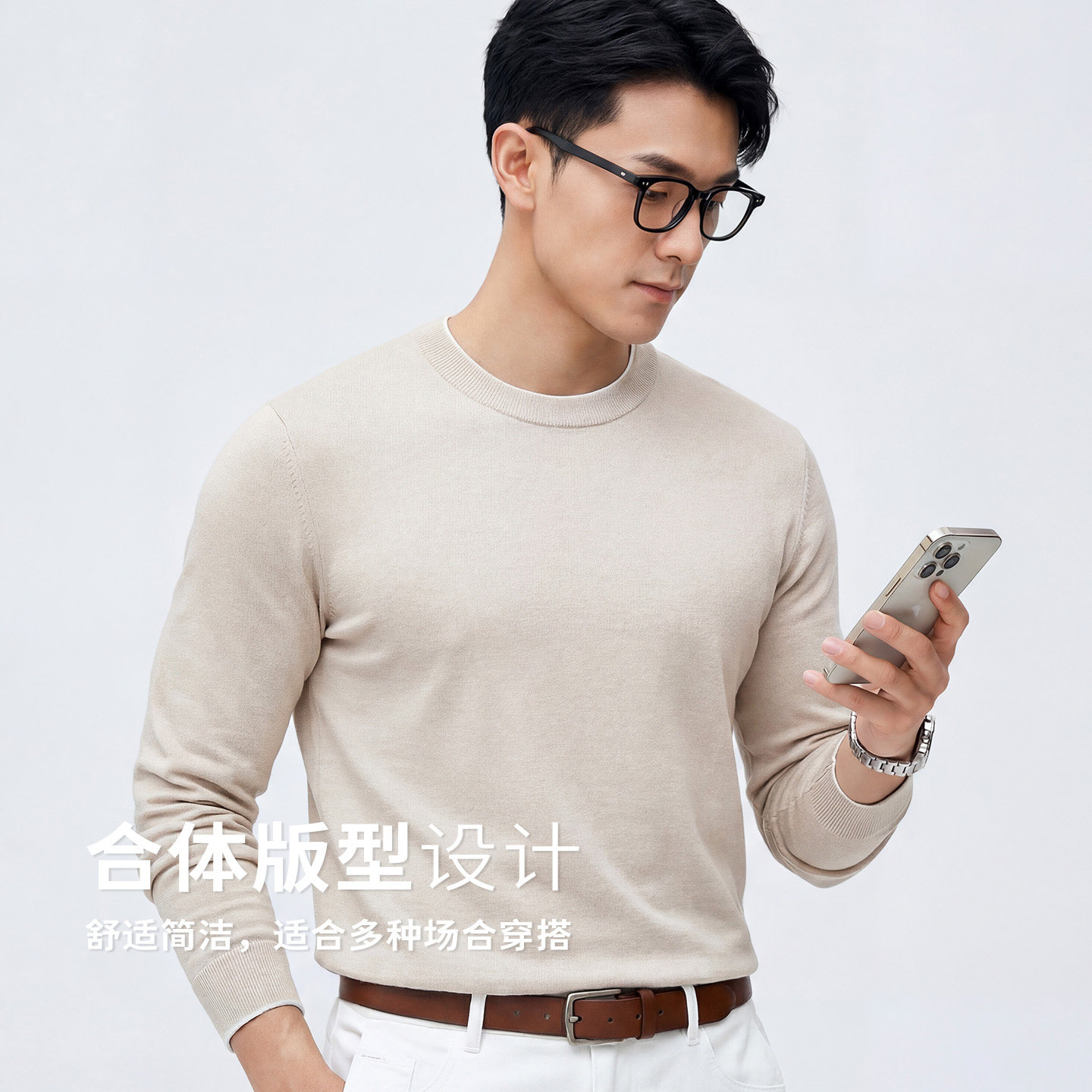 莱克斯顿2026春新款男装圆领针织衫,采用优质含羊绒面料,触感柔软亲肤,保暖透气兼具。创新假两件设计,层次丰富,视觉更显精致时尚,轻松打造都市休闲风格。简约圆领剪裁,贴合颈部线条,穿着舒适不束缚。版型修身有度,百搭易穿,可搭配牛仔裤、休闲裤或外搭夹克,适合日常通勤、周末出行等多种场合。细节做工考究,走线工整,彰显品牌品质追求。这款毛衣将舒适与时尚完美融合,是春季衣橱不可或缺的百搭单品,展现男士低调优雅的型格魅力。