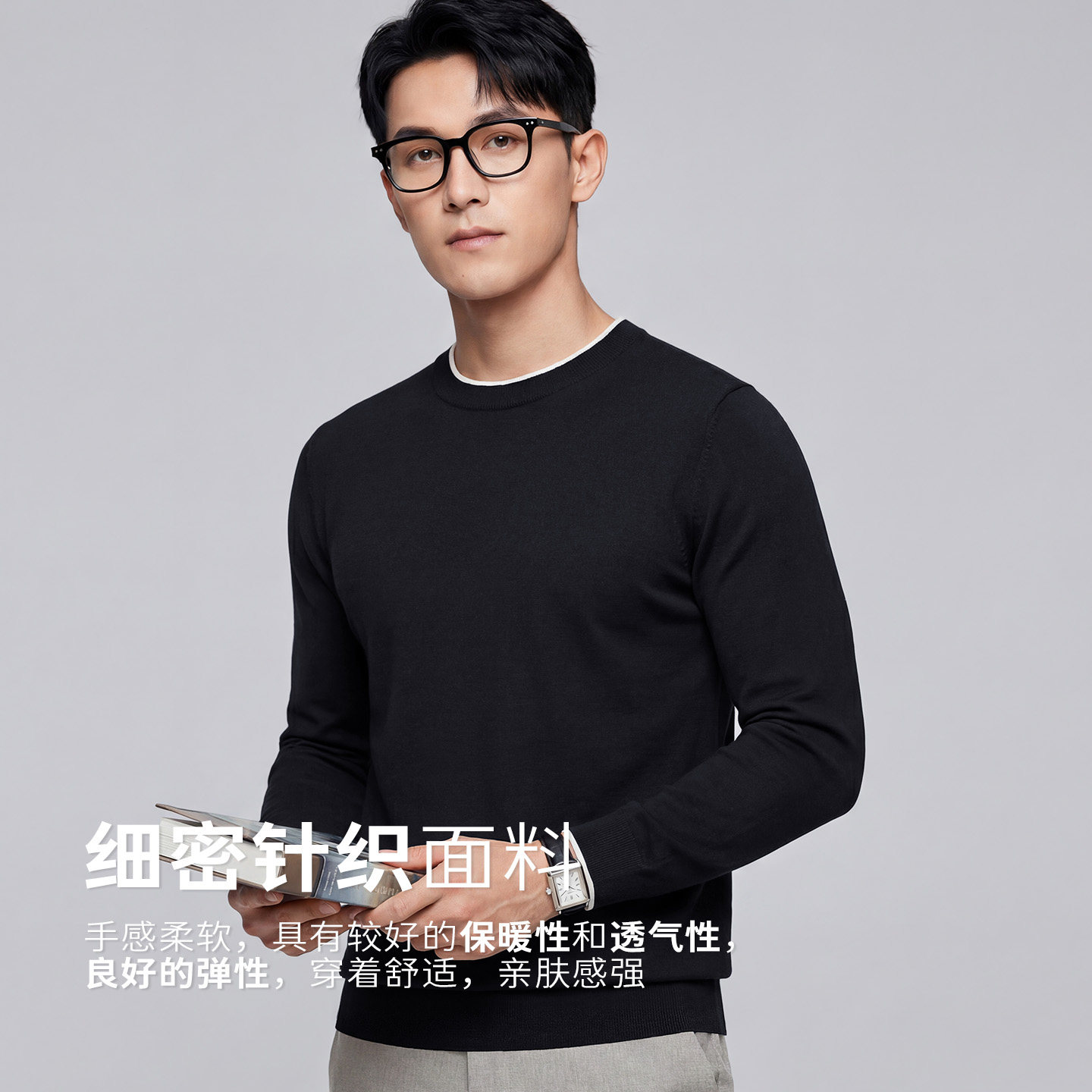恒源祥精纺羊毛衫男加厚保暖冬季新款圆领毛衣爸爸针织打底羊绒衫