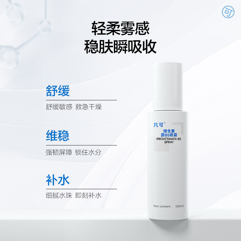 凡可维生素原B5喷雾精华水是一款专为男女肌肤设计的补水保湿舒缓型爽肤水。富含高浓度维生素原B5(泛醇),能深入渗透肌肤,强化屏障功能,有效锁住水分,持久保湿。细腻雾化喷头设计,轻喷即化,迅速吸收,带来清爽不粘腻的肤感。适用于干燥、敏感或晒后肌肤,具有良好的舒缓修护效果,帮助缓解泛红与不适。日常可随时补喷,妆前保湿、妆后定妆皆宜,便携装设计适合居家、办公及旅行使用。无论是油性、干性还是混合性肌肤,均可安心使用,是男女通用的全能型护肤喷雾,为肌肤注入水润活力。