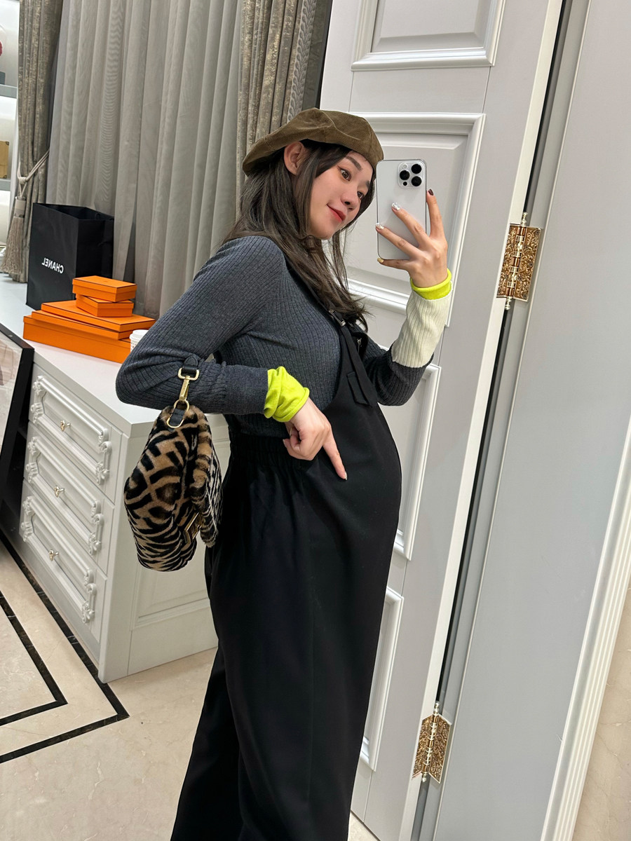 时髦洋气~孕妇冬装套装时尚背带裙新款连衣裙高领针织打底衫秋装