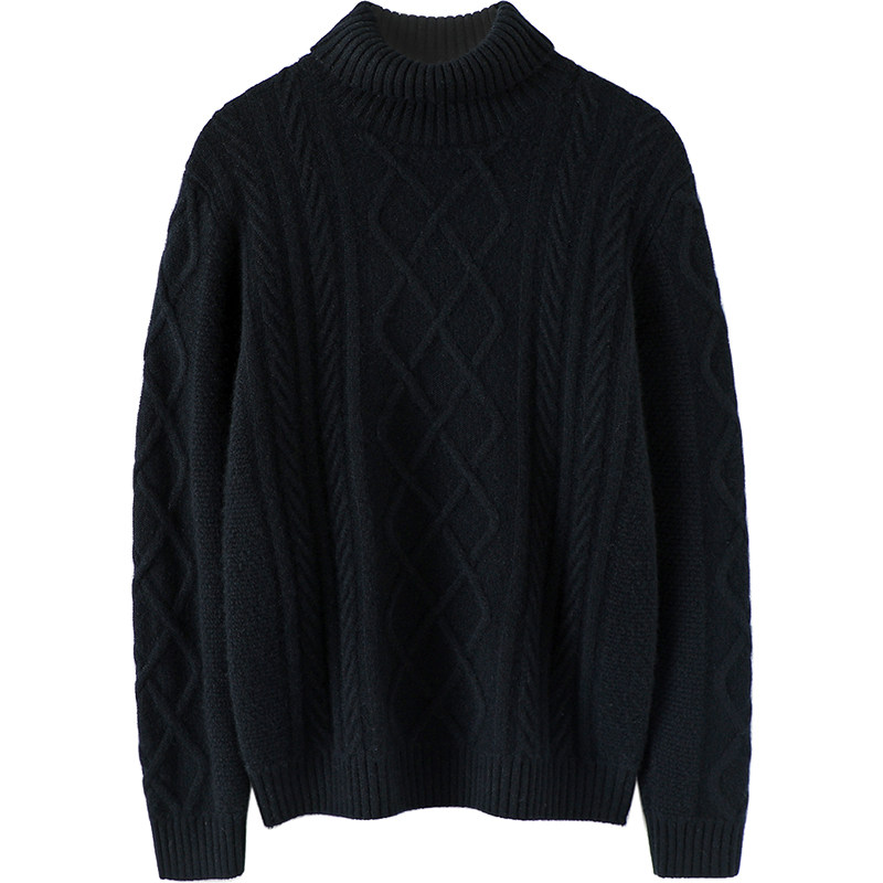 天猫低奢高羁感!男士加厚绞花高领羊绒衫男针织衫保暖宽松青年新款