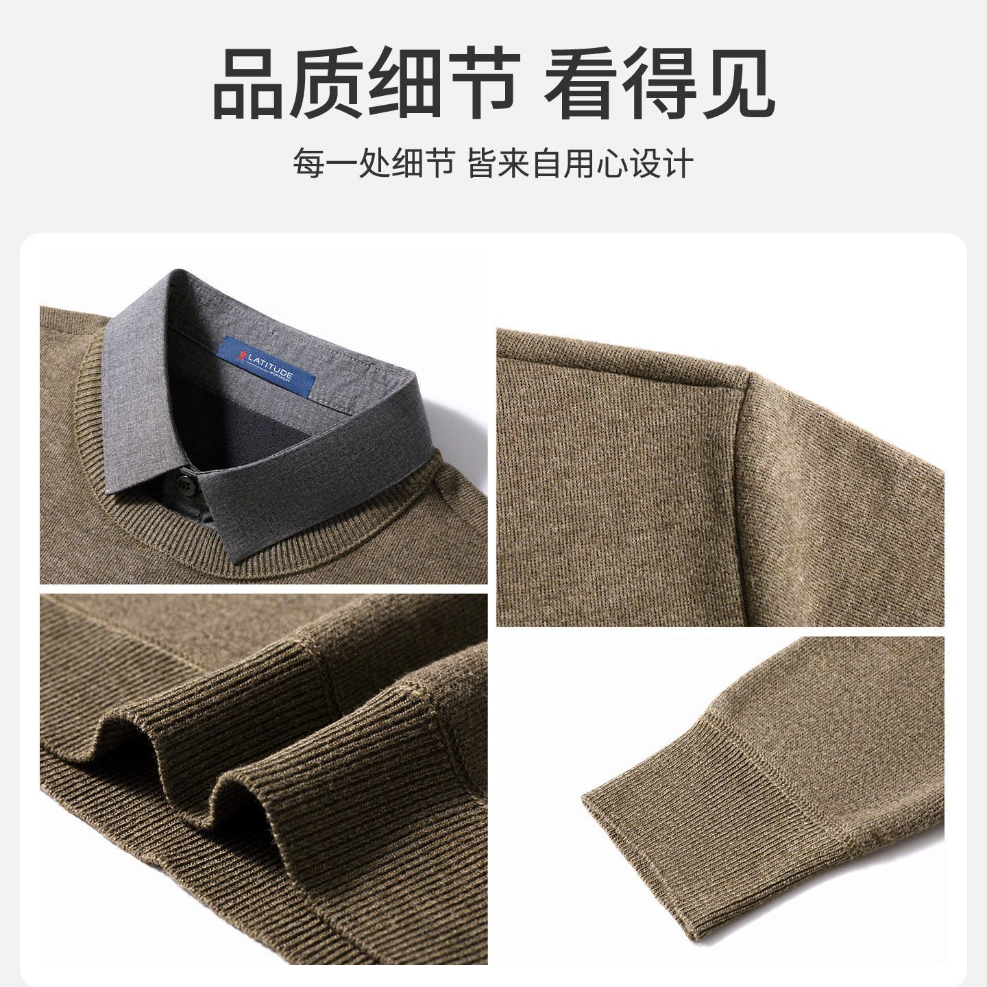 天猫含绵羊毛-梦特娇男士秋冬季加绒毛衣假两件打底衫中年男装针织衫Z
