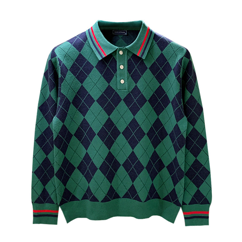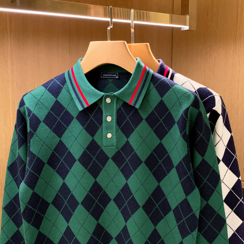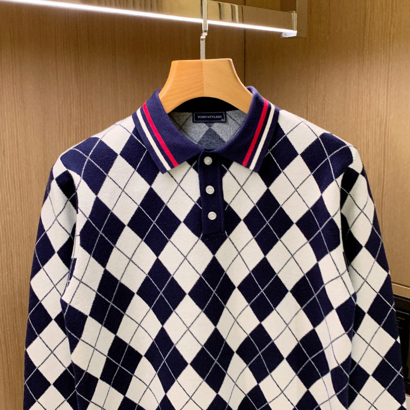 淘宝法国奢华男装翻领针织衫男款上衣秋冬新款时尚复古男士polo衫长袖