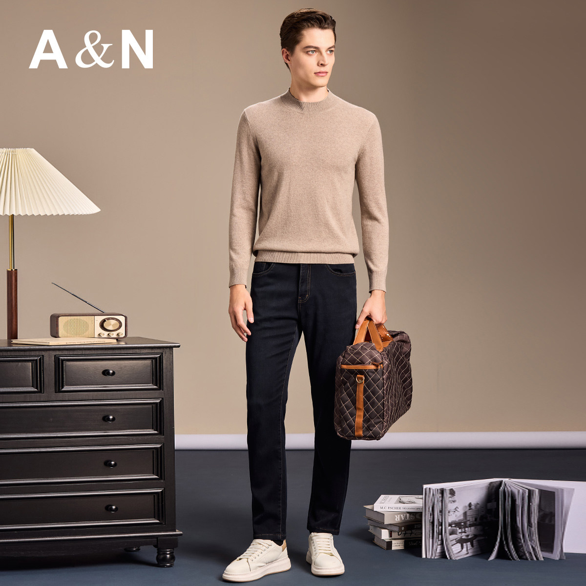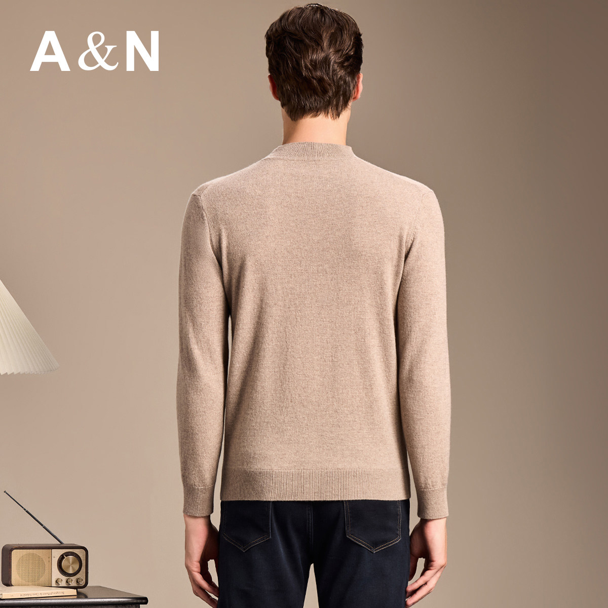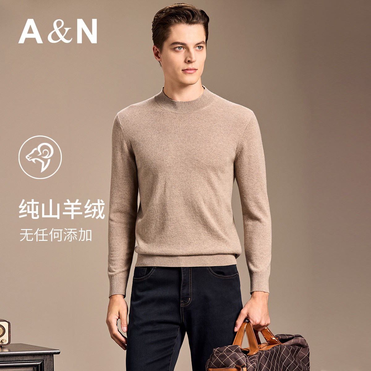 天猫【初选原绒100%山羊绒】AntonNeal针织圆领毛衣男纯色保暖打底衫