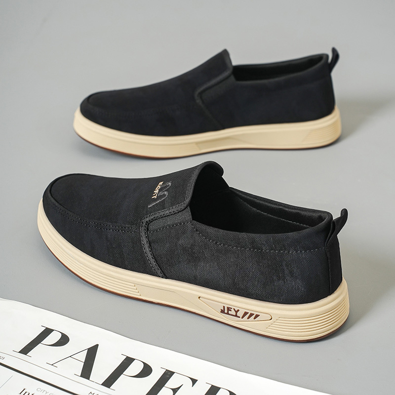 索源鞋子男2025春季新款休闲单鞋帆布鞋百搭透气一脚蹬爸爸鞋