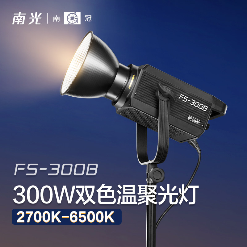天猫南冠南光FS-300B双色温LED大功率摄影摄像补光灯常亮聚光灯人像影棚美食服装直播间灯光设备拍照柔光灯