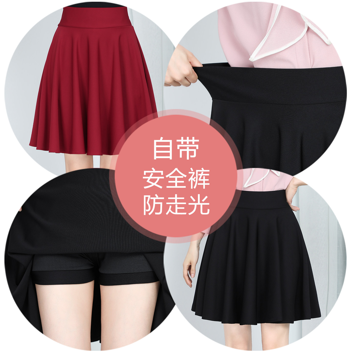 淘宝黑色半身裙女春秋新款高腰显瘦大摆广场舞裙胖mm大码防走光A字裙