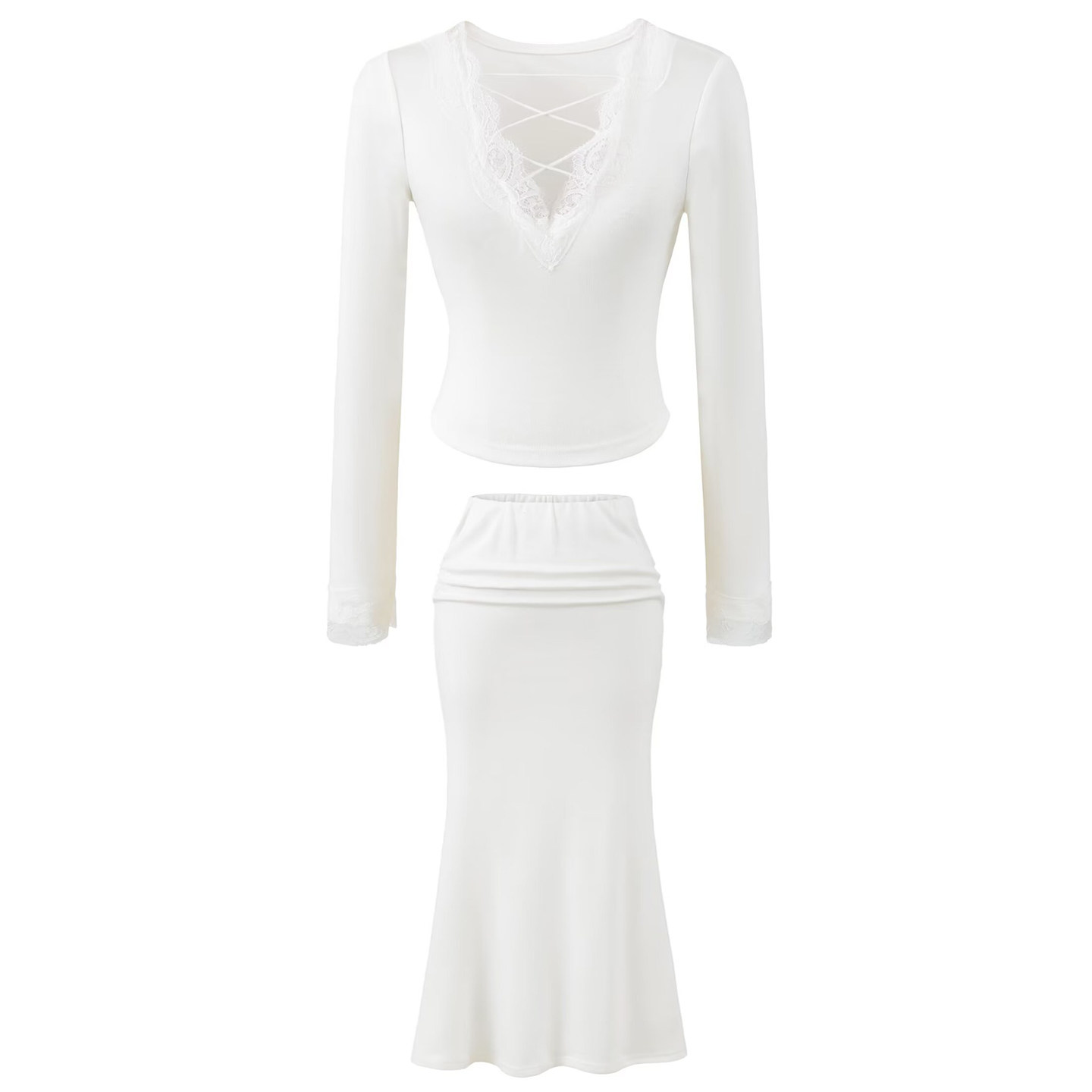 2026年春季新款纯欲风两件套女装,以高级感半身裙为核心,巧妙融合清纯与性感,打造优雅又不失魅力的穿搭风格。上衣采用修身剪裁与微透薄纱设计,展现若隐若现的肌肤美感,搭配高腰A字半身裙,拉长腿部线条,凸显女性柔美曲线。整体色调以奶油白、浅杏粉等低饱和色系为主,质感细腻,尽显高级。细节处点缀精致蕾丝与金属扣饰,提升整体设计感。无论是日常通勤还是约会聚会,这套纯欲风套装都能让你轻松驾驭,展现自信从容的时尚态度,成为春日街头的焦点。