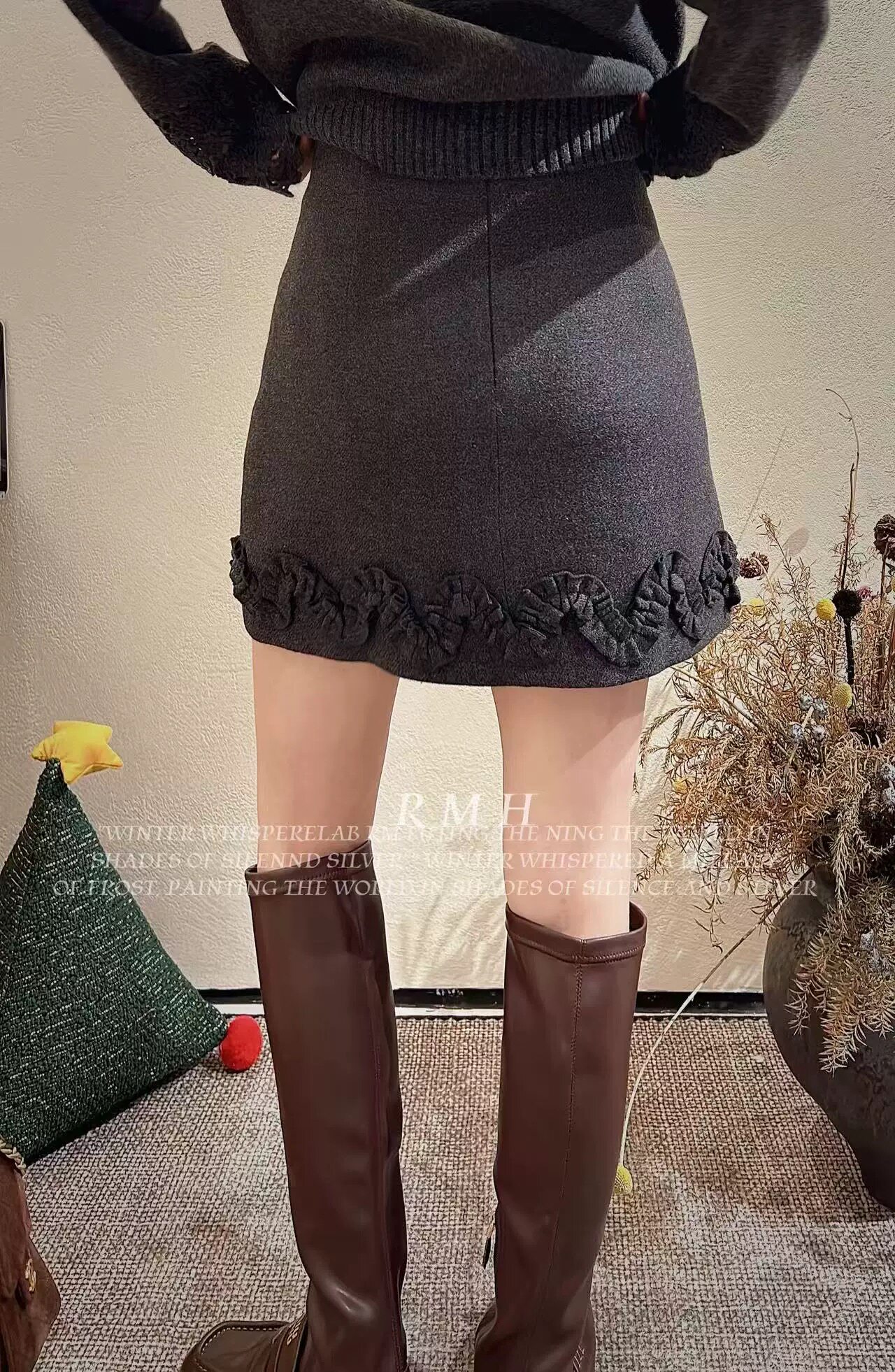 淘宝欧洲站2025秋冬新款蕾丝花边拼接羊毛呢半身裙短裙女25825