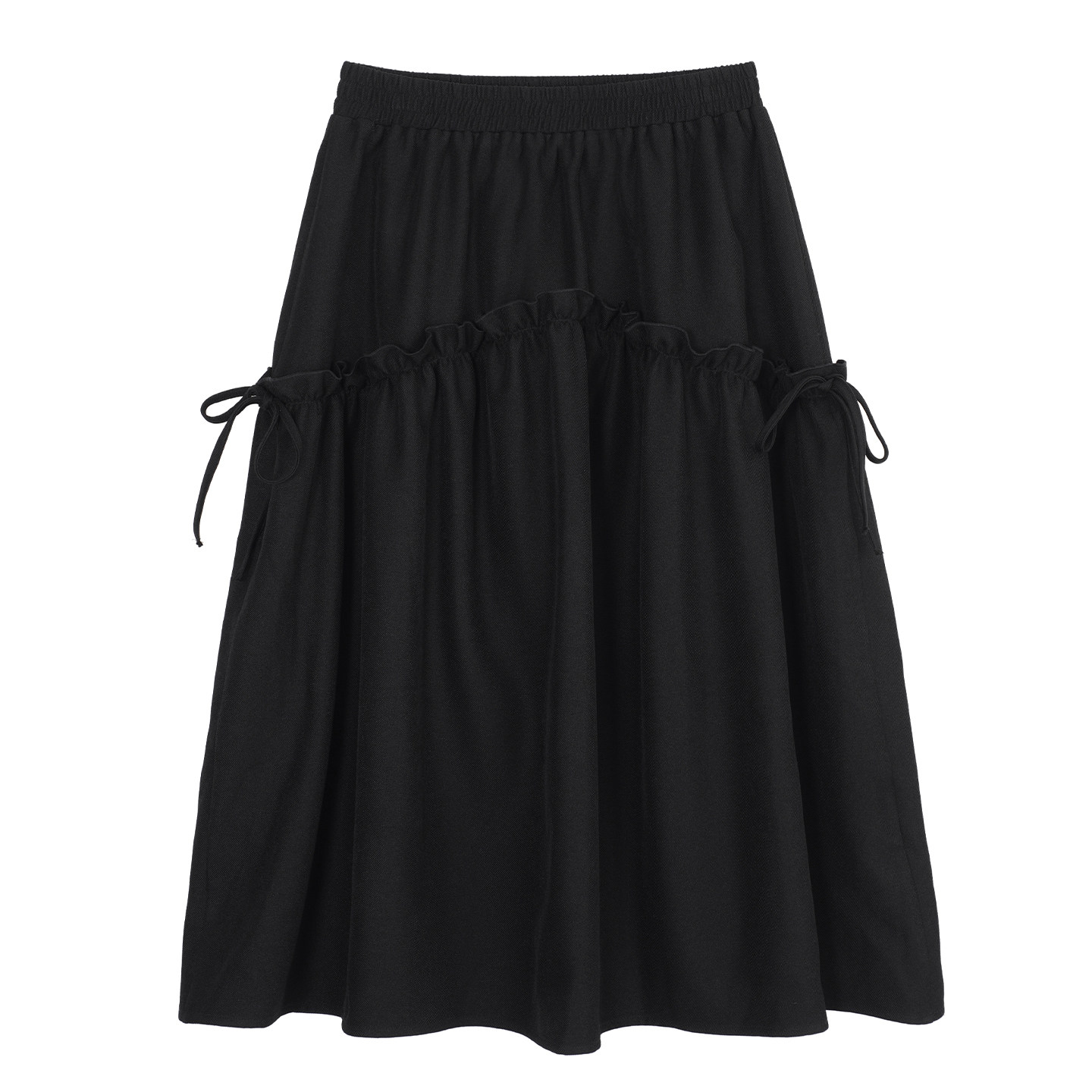淘宝YUZI鱼子黑色A字半身长裙女可系蝴蝶结木耳边秋冬高腰显瘦大码女