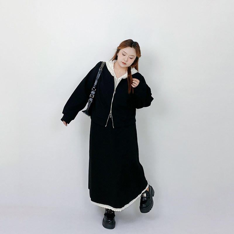 Milu家大码女装秋季蕾丝拼接假两件卫衣A字半身裙胖MM显瘦套装,专为追求时尚与舒适的女性设计。采用高品质面料,亲肤透气,版型宽松显瘦,巧妙修饰身形。上衣为假两件设计,蕾丝拼接增添层次与女人味,搭配高腰A字半身裙,有效拉长腿部线条,藏肉又显高。整体风格简约大方,兼具甜美与休闲感,适合日常出行、约会或通勤。无论是梨形还是苹果型身材,都能轻松驾驭,展现自信魅力。Milu家专注大码女装,致力于为每位女性打造专属的时尚穿搭体验,秋季必备显瘦套装,穿出优雅与潮流。