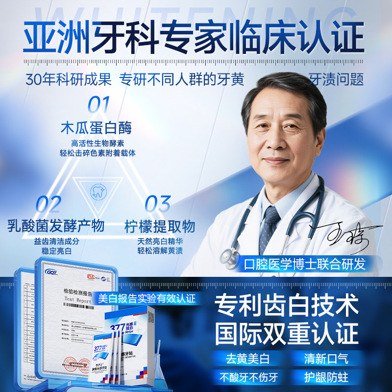李护士美白牙贴377是一款专为牙齿去黄、提亮牙色设计的专业美白产品。采用温和有效的377美白成分,结合天然酵素配方,能深入分解牙渍、烟渍等顽固色素,安全不伤牙釉质。其光感技术可增强牙齿亮白效果,使用后牙齿更显晶莹剔透。牙贴贴合度高,操作简单,每日仅需15-30分钟,持续使用可见明显美白效果。产品通过权威检测,确保正品品质,适合因咖啡、茶、吸烟等导致牙齿发黄的人群。坚持使用,轻松拥有自信笑容,是居家美牙的理想选择。