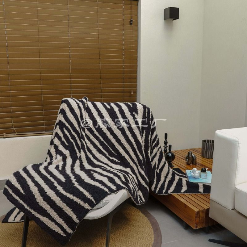 天猫高级感斑马纹沙发盖毯半边绒毯子办公室午睡午休毯航空毯装饰毛毯