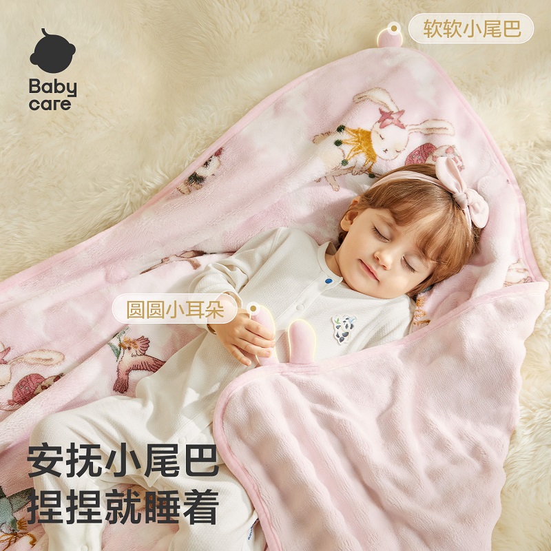 天猫babycare双层绒毯子盖毯毛毯春秋加厚宝宝抑菌山茶花幼儿园午睡