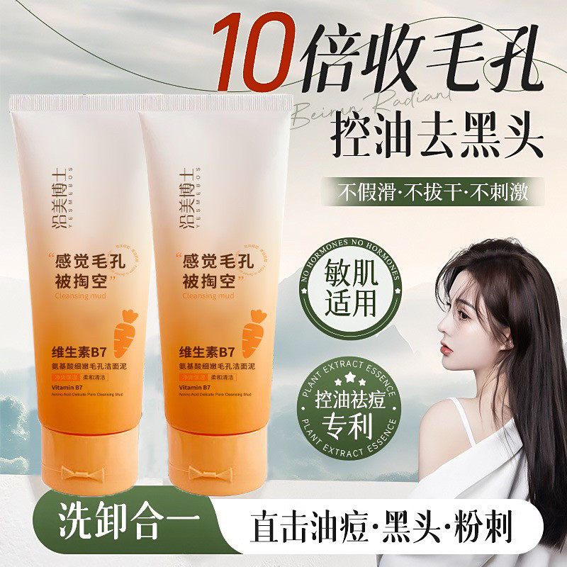 淘宝维生素B7氨基酸细嫩毛孔洁面泥去黑头深层清洁控油男女士