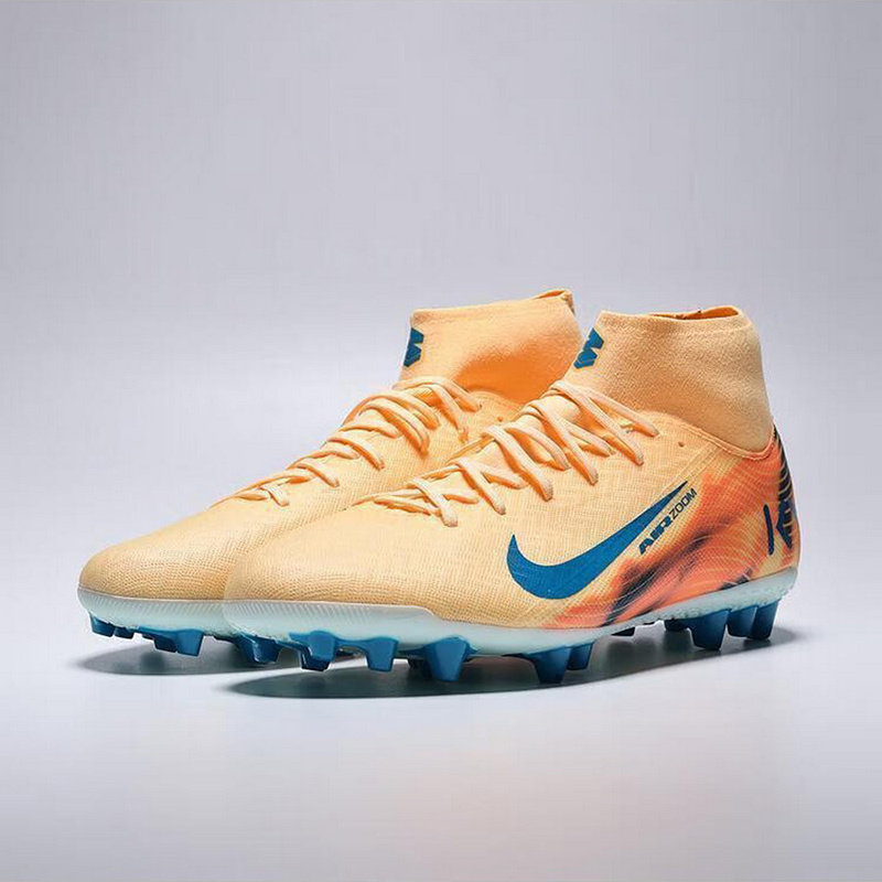 NIKE耐克男鞋SUPERFLY 10 ACADEMY AG(型号:FQ8335-801)是一款专为人工草场设计的轻量化高帮足球训练鞋。采用Flyknit鞋面技术,提供出色的包裹性与透气性,贴合脚型,增强控球触感。前掌搭载Nike Zoom Air缓震单元,带来灵敏响应与爆发力支持,助力快速启动与变向。高帮设计增强踝部支撑,提升运动稳定性。外底配置AG鞋钉,专为人工草坪优化,抓地力强,防滑耐磨。整体设计融合速度与舒适性,适合高强度训练及日常实战,是追求敏捷表现球员的理想选择。亮眼配色更彰显个性风格。