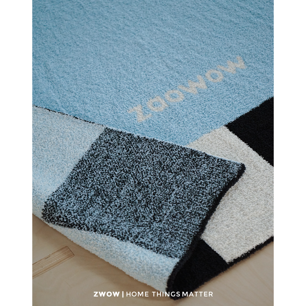 淘宝造卧zwow天空岛白黑蓝色格中古风双面加厚半边绒盖毯毛毯午睡毯子