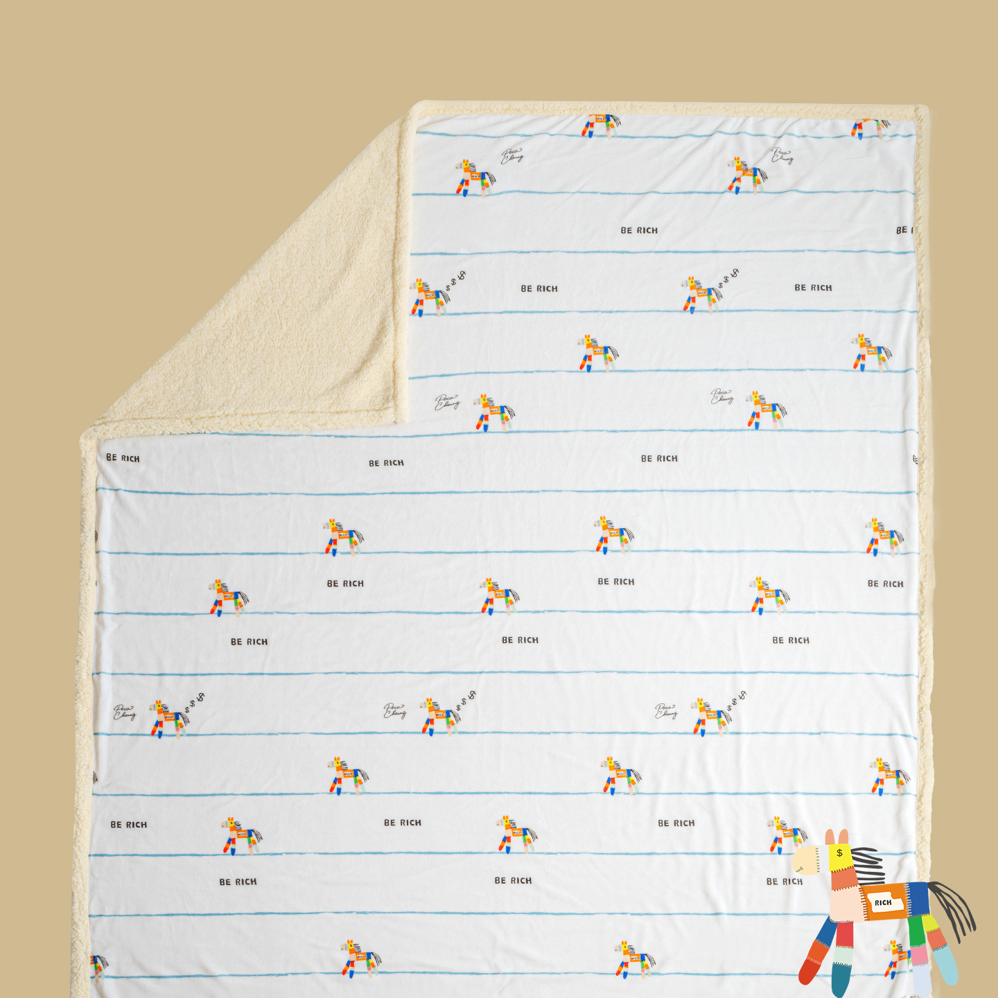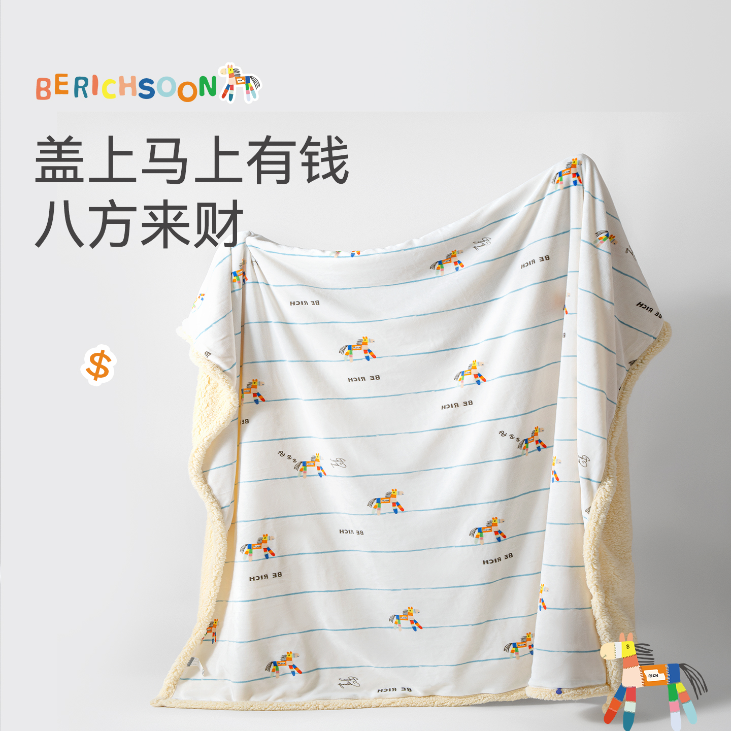 天猫艾美家马上有钱马年幸运加绒保暖沙发毯毛毯办公室宿舍盖毯被套