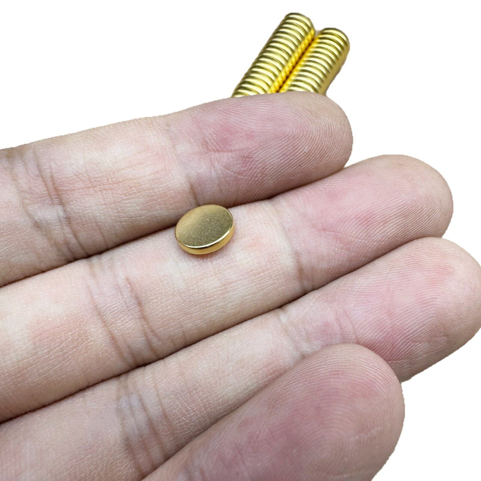这款镀金吸铁石为圆形强磁配件,尺寸精准(8×1.5毫米),采用高性能钕铁硼磁钢制造,磁性强劲,吸附稳固,适用于多种精密用途。表面经镀金工艺处理,光泽亮丽,防腐耐磨,兼具美观与实用性。广泛应用于打火机改装、精美饰品制作、DIY手工配件及小型电子设备中,是提升产品质感与功能性的理想选择。小巧轻便却磁力出众,安装便捷,兼容性强,深受手工爱好者和设计师青睐。无论是作为装饰元素还是功能性组件,都能完美胜任,彰显精致工艺与现代美学的结合。