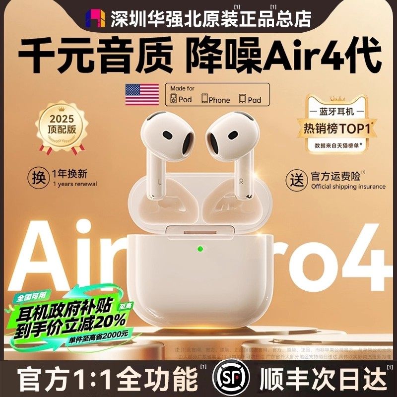 淘宝政府补贴华强北蓝牙耳机无线2026新款适用苹果降噪Air4代原装正品