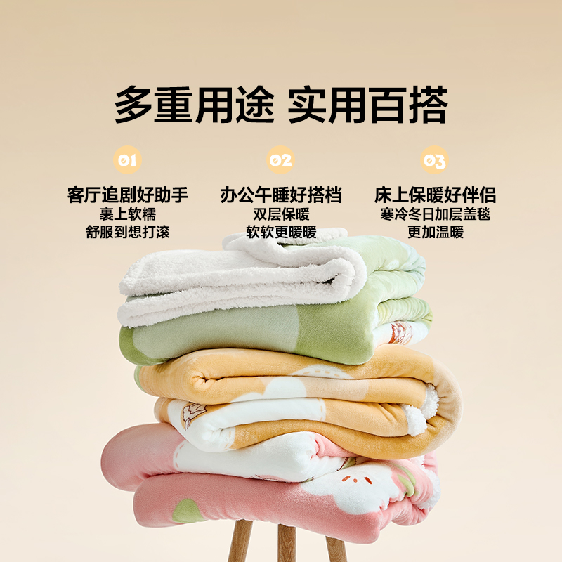 洁丽雅珊瑚绒毛毯冬季加厚牛奶绒盖毯被办公室午睡沙发毯子床上用