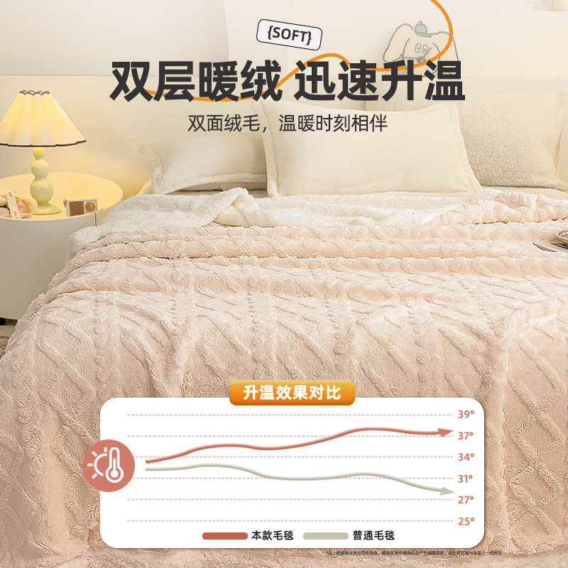 天毛毯兔绒冬季沙发宿舍盖毯加厚披肩学生四季通用午睡小毯子珊瑚绒