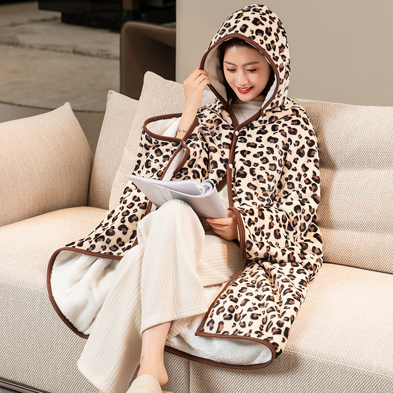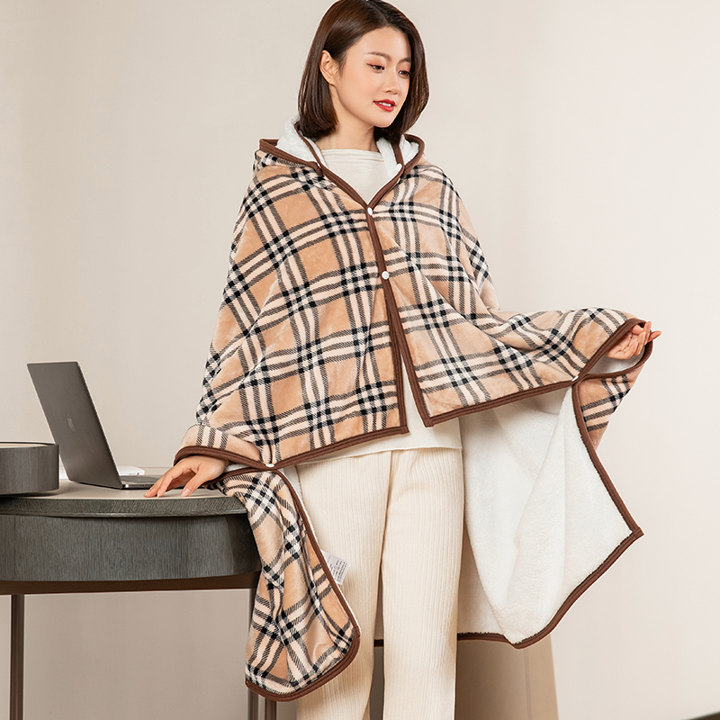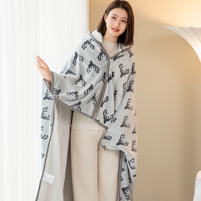 淘宝秋冬加厚保暖法兰绒双层懒人披肩毛毯办公室学生午睡斗篷披风毯子