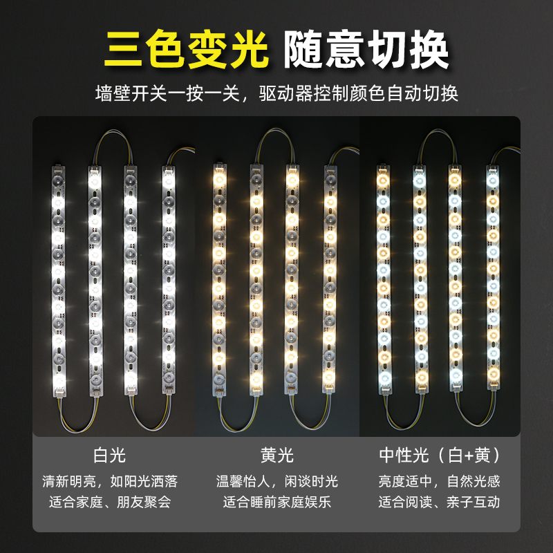 淘宝客厅吸顶灯替换灯条LED透镜光源节能灯带三色变光LED长条改造灯板