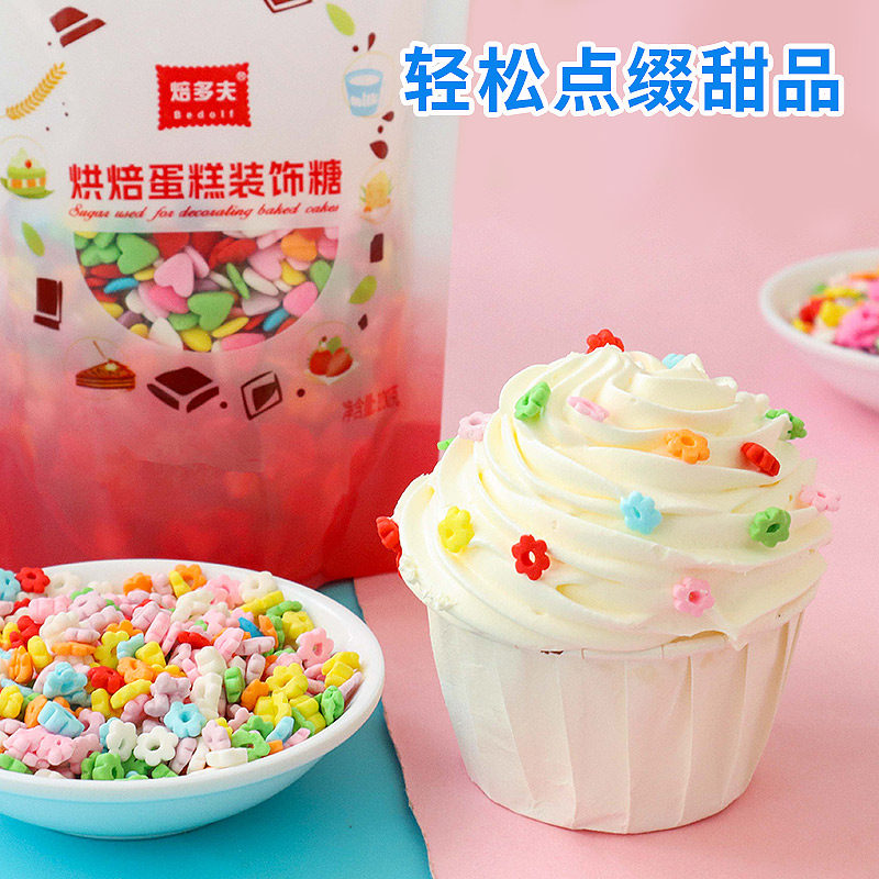 淘宝糖珠蛋糕装饰可食用彩色小花爱心五角星切片糖果纸杯甜品烘焙点缀