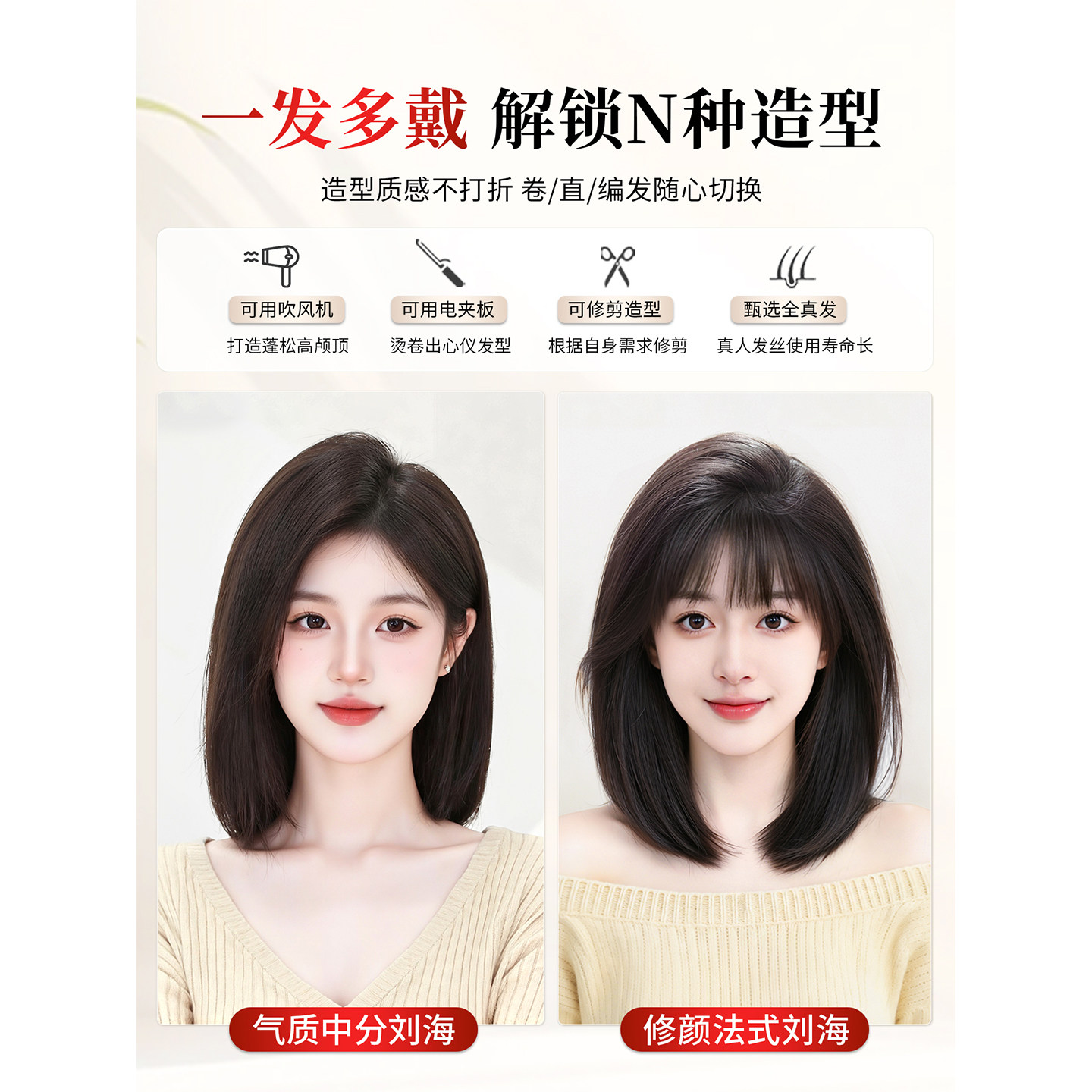 天猫全递针假发片女头顶真发遮白发增发量蓬松隐形自然前额刘海假发片