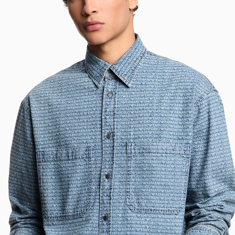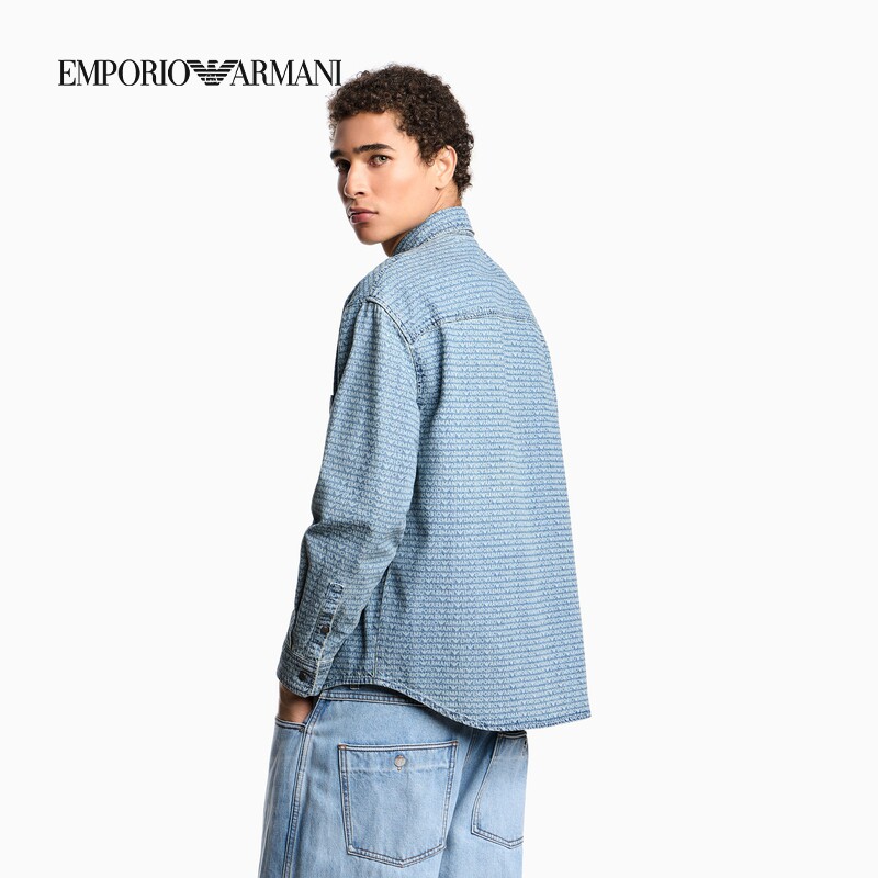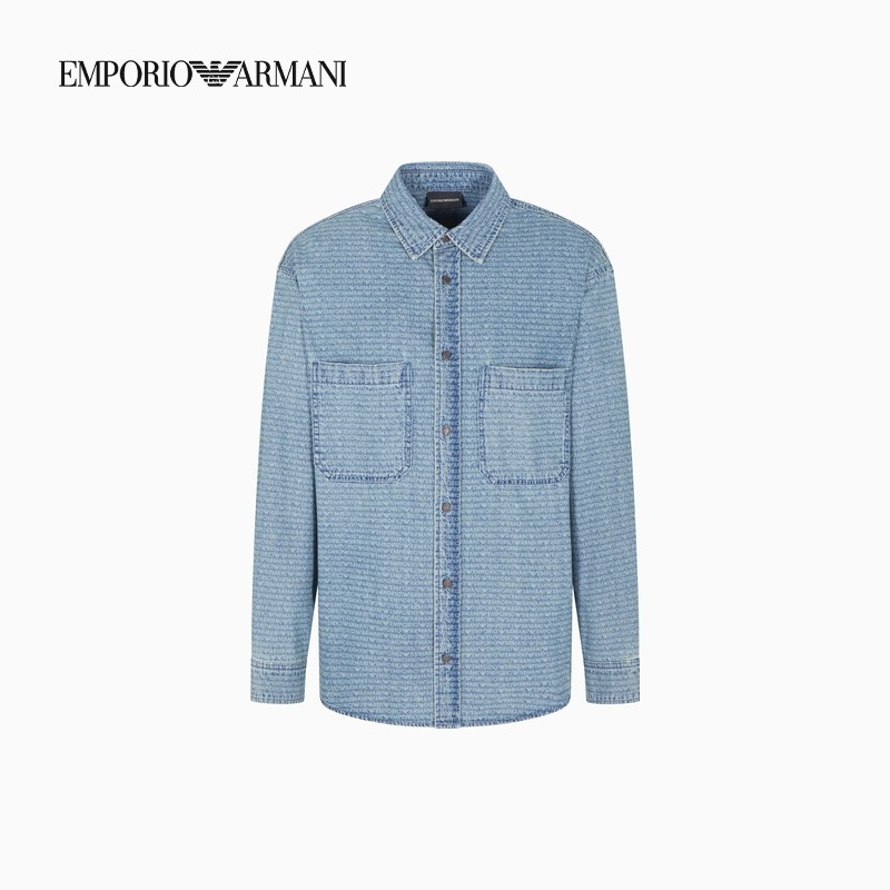 天猫EMPORIO ARMANI/阿玛尼秋冬新款男士印花轻奢人夫感工装衬衫官方