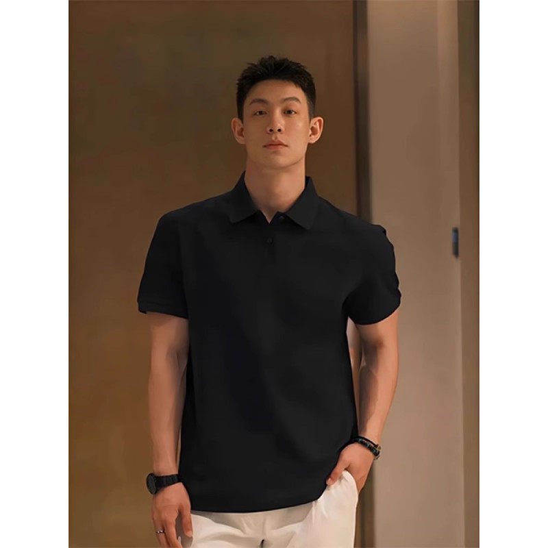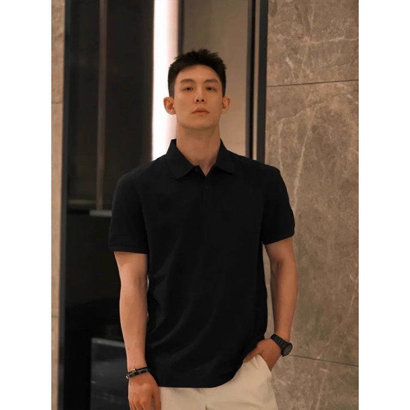 天猫黑色短袖男款polo衫夏季痞帅轻熟风成熟稳重男装重磅翻领正肩t恤