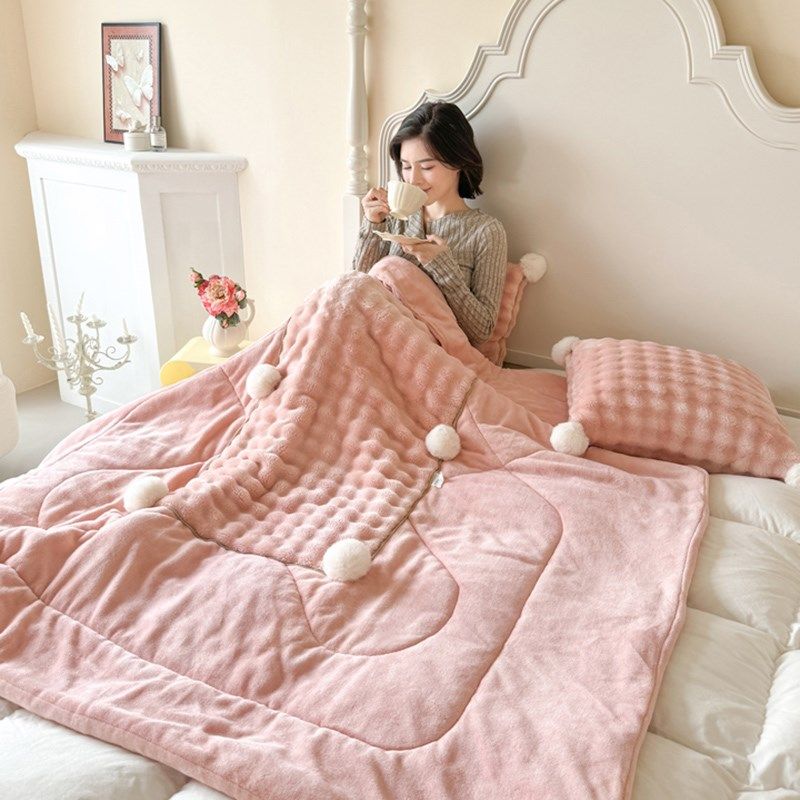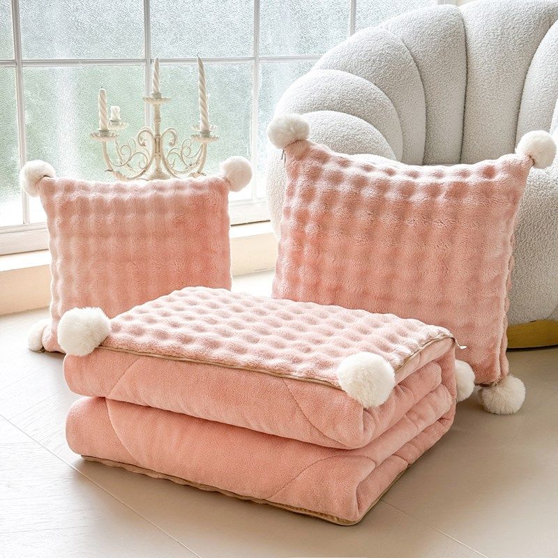 淘宝韩式仿兔毛绒两用抱枕被加厚车载靠垫办公室沙发午睡可折叠懒人被