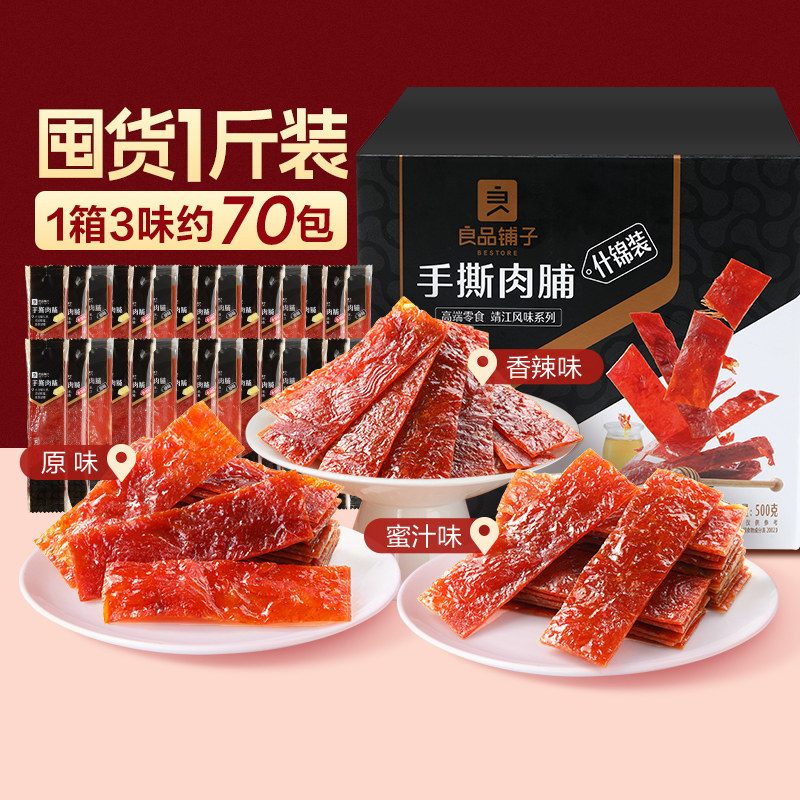 天猫良品铺子手撕肉脯什锦装肉脯猪肉干零食解馋网红休闲小吃整箱