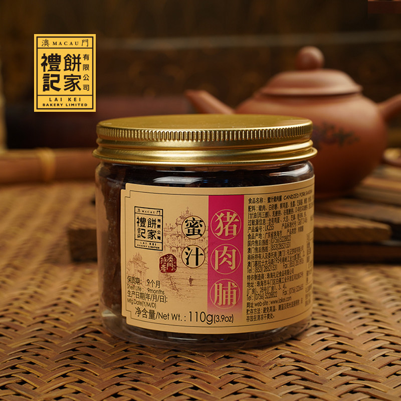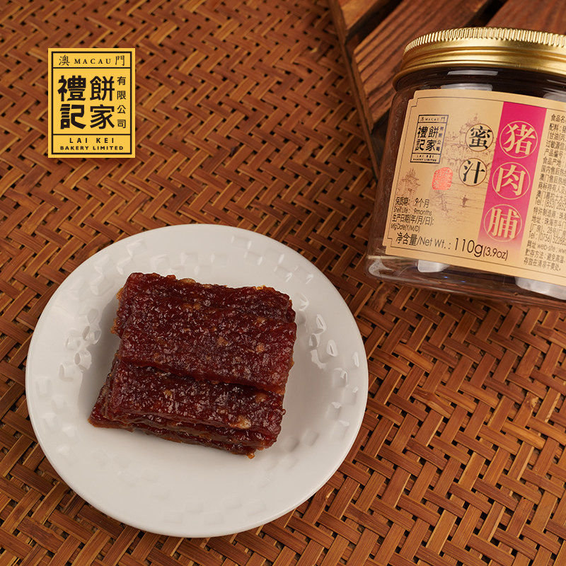 澳门礼记饼家蜜汁肉脯,是地道澳门手信的经典代表。精选优质猪肉,经传统工艺腌制烘烤,再以秘制蜜汁调味,口感咸甜适中,肉质紧实有嚼劲,香气浓郁诱人。每片肉脯色泽油亮,入口即化,回味悠长。110g樽装设计精美便携,既防潮保鲜,又彰显品质,是馈赠亲友或自享的绝佳选择。作为澳门知名老字号品牌,礼记饼家坚持古法制作,传承地道风味,让每一口都饱含澳门风情。无论是旅行纪念还是日常零食,这款蜜汁肉脯都是不可错过的澳门特产美味。