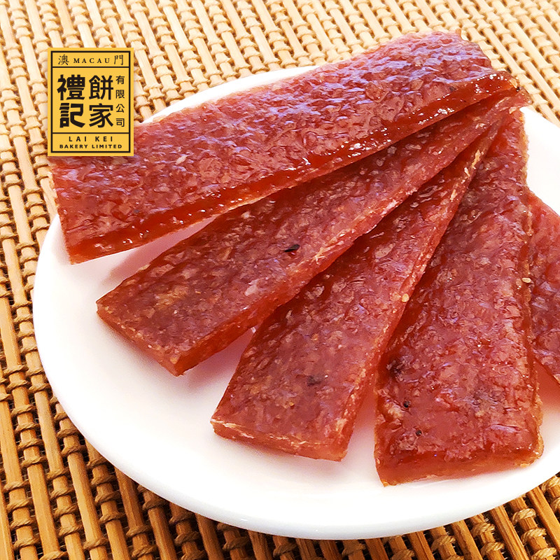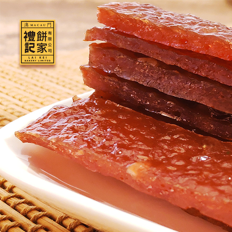 澳门礼记饼家蜜汁猪肉脯,是地道澳门特产美食,精选优质猪后腿肉,经传统工艺腌制烘烤而成。肉质紧实有嚼劲,蜜汁浓郁香甜,咸中带甜,风味独特,入口回味无穷。无添加防腐剂,天然健康,是办公室零食、休闲时光的绝佳选择。独立小包装,方便携带,随时满足吃货味蕾。无论是自享还是馈赠亲友,礼记猪肉脯都承载着澳门百年老字号的匠心品质,让人一口爱上这地道粤式风味,是旅行手信与日常解馋的必备美味。