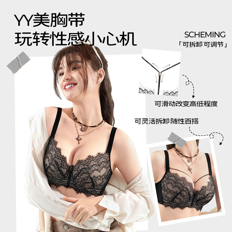 天猫糖粒糖粒大码内衣女大胸显小胸性感蕾丝聚拢上托防下垂薄款文胸罩
