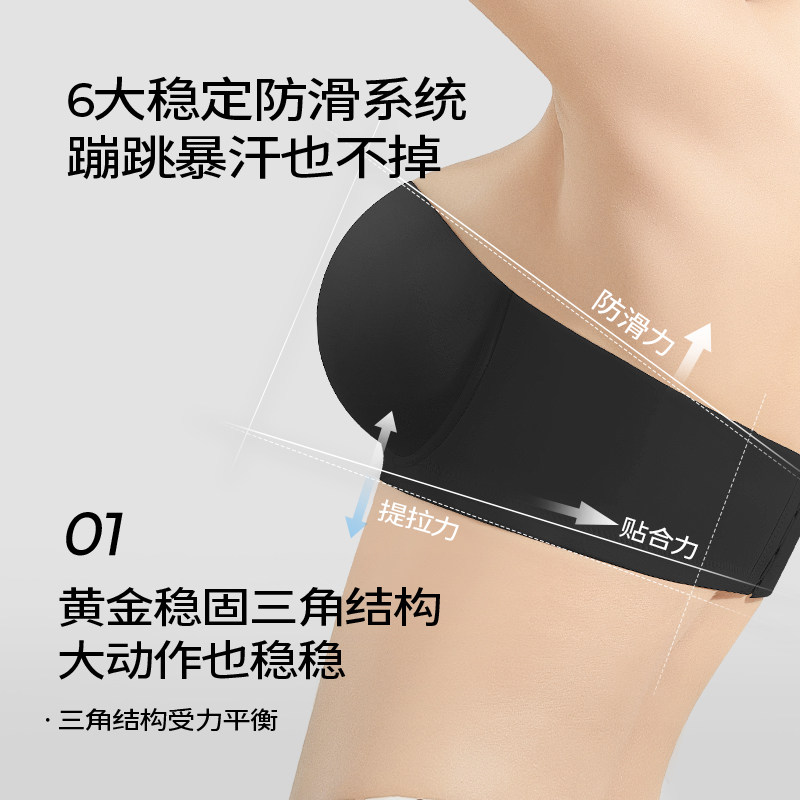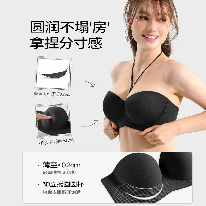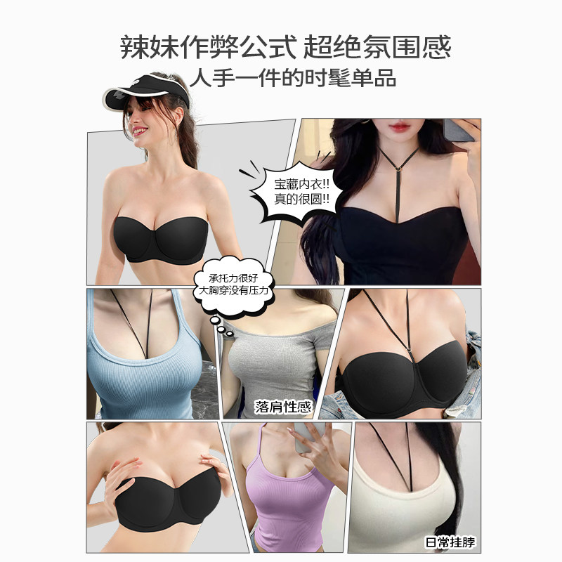 天猫糖粒挂脖无肩带内衣女防滑聚拢无痕抹胸婚纱大胸防下垂大码文胸罩